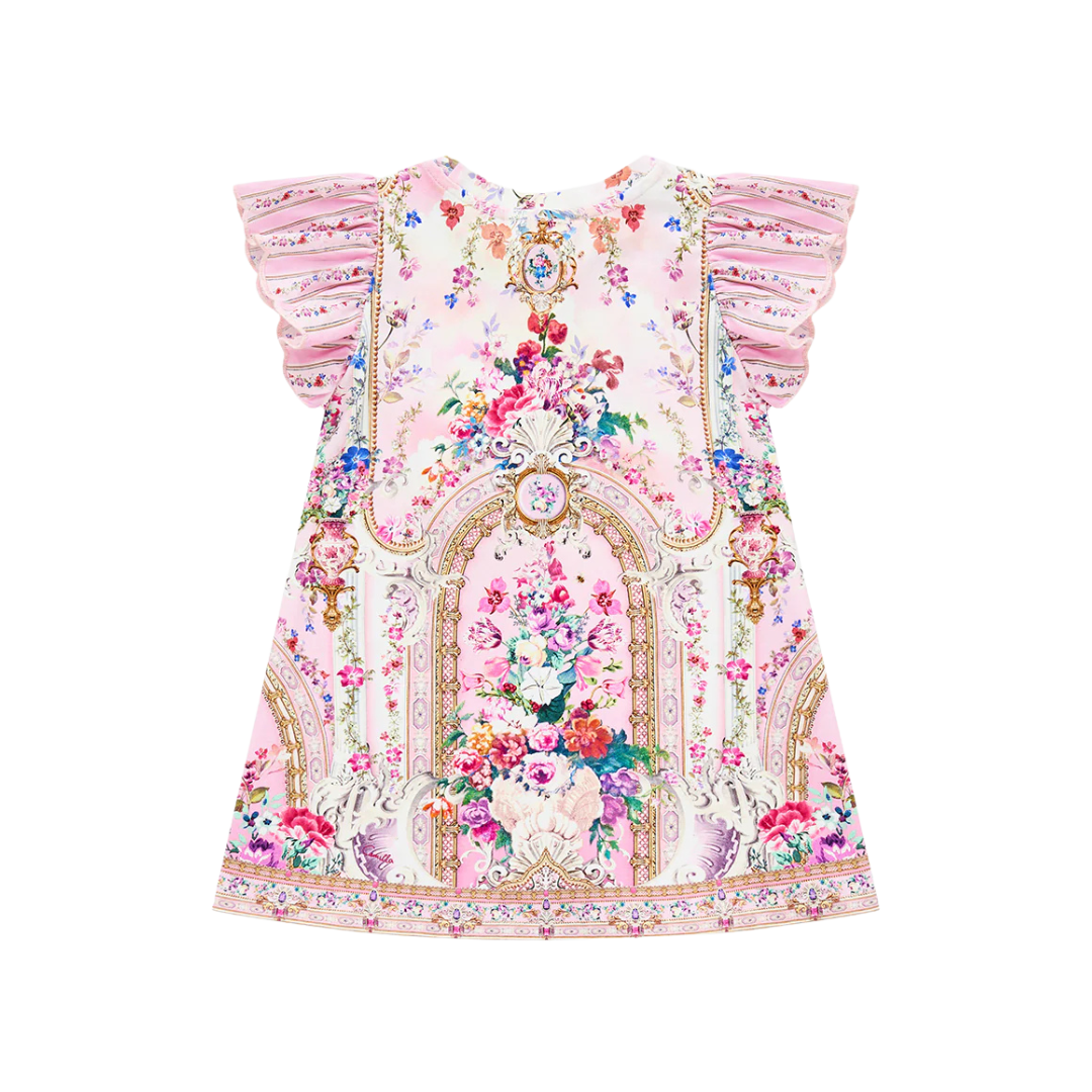The Palatial Pastels Babies Flared Dress With Frill Shoulder is a handcrafted silhouette designed by our in house artisans. Reimagined in an exclusive limited edition print, our babies flared dress features frill sleeves framed by a square neckline that falls into a mini length skirt. A shirred back adds a comfort and flexible fit, made for adventure and imagination.