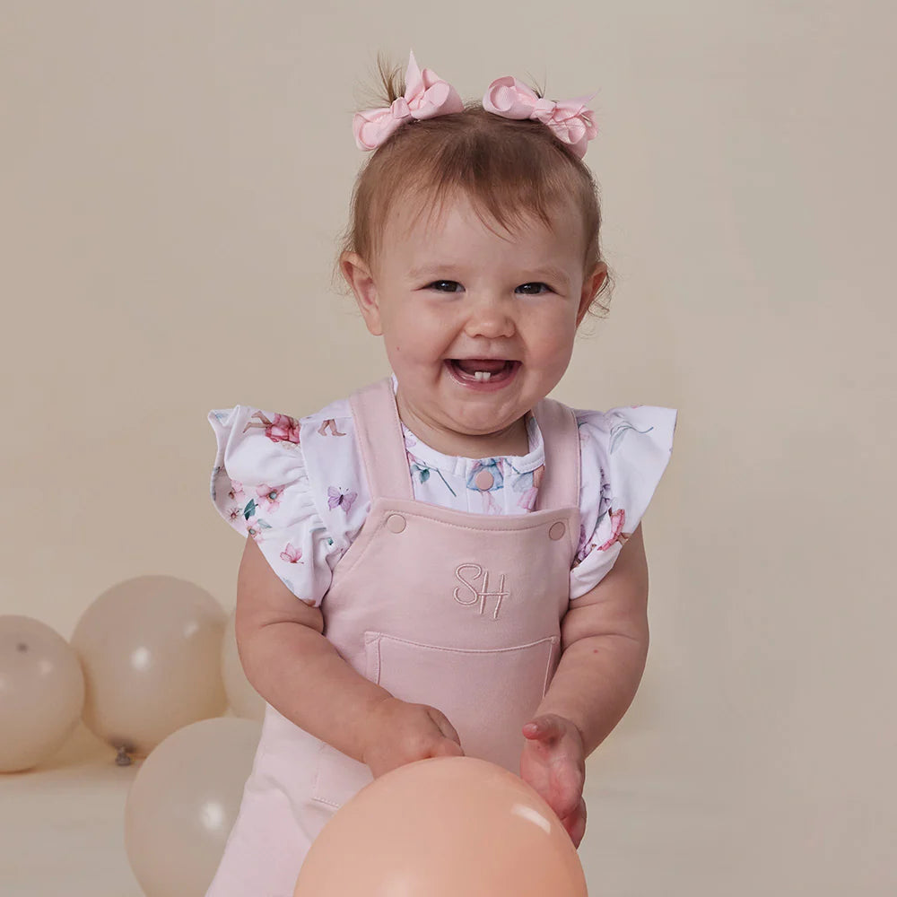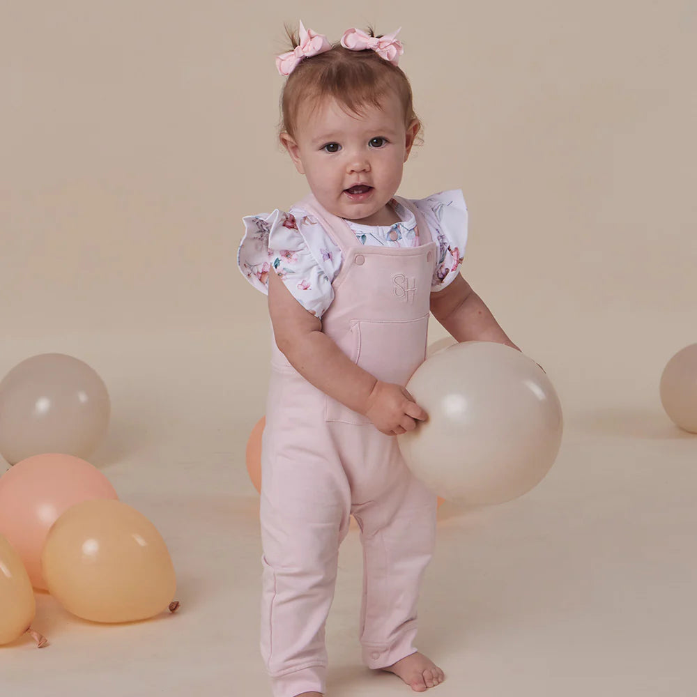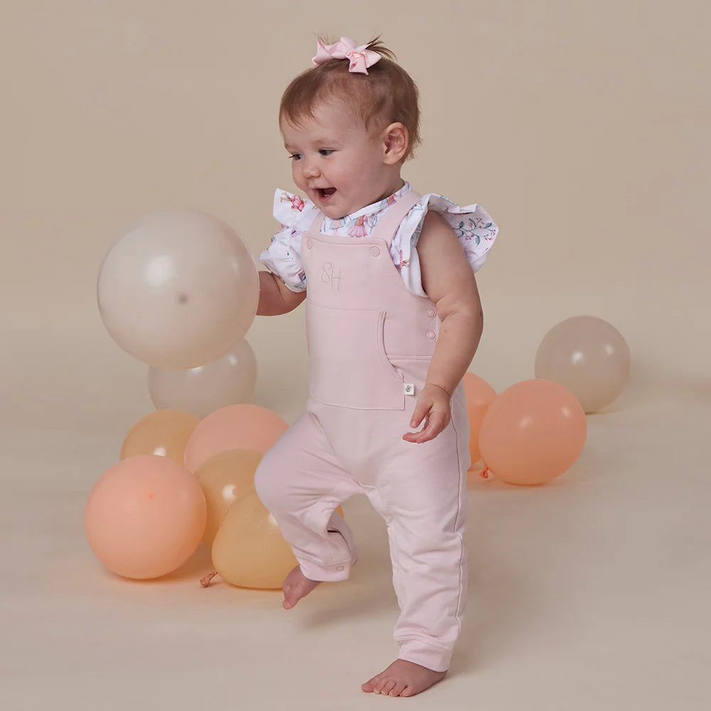 Our Joey Overalls are stretchy, comfortable, and have a functional joey pouch on the front. A slightly loose fit allows them to be paired with a top or bodysuit - these match beautifully with many of our prints and rib colours.