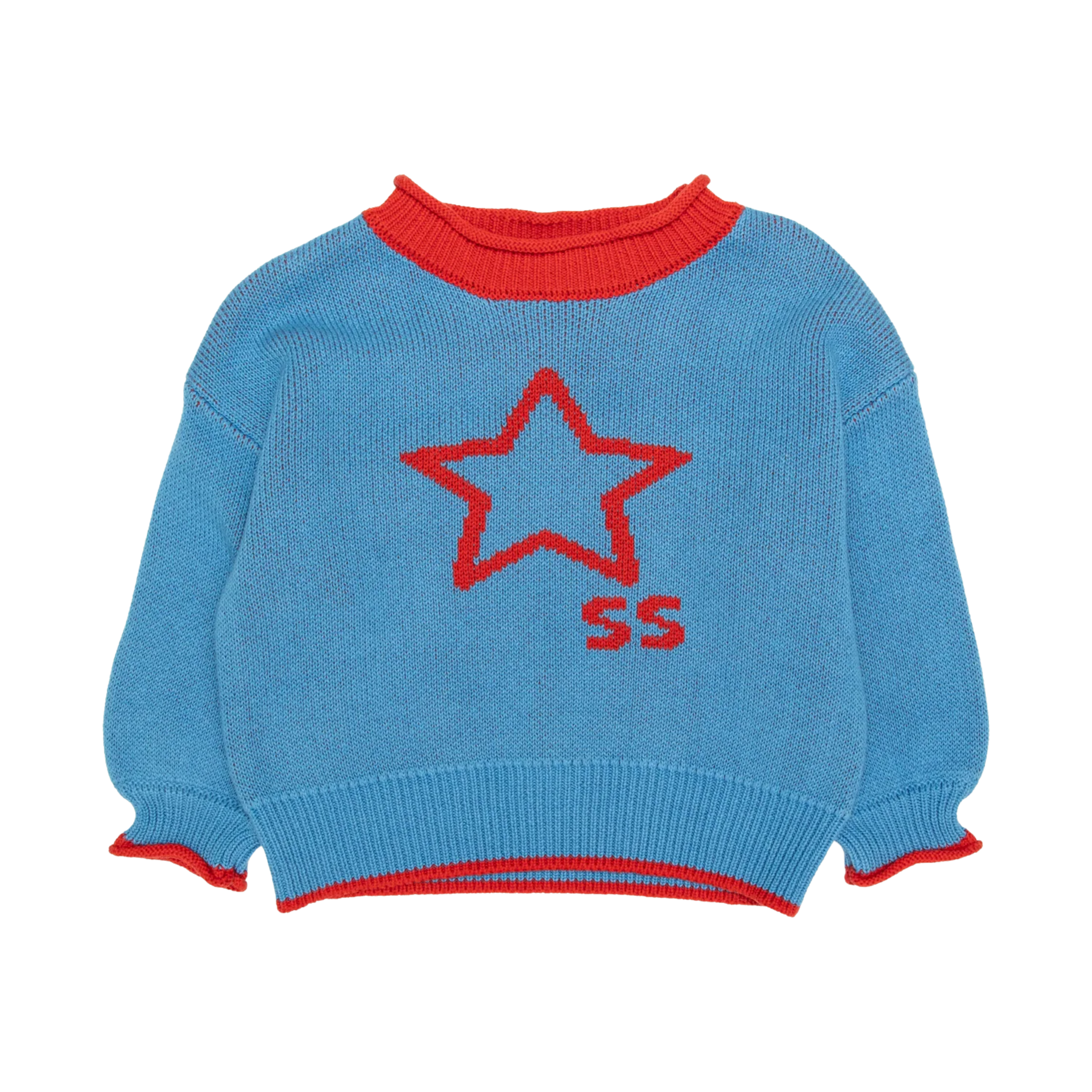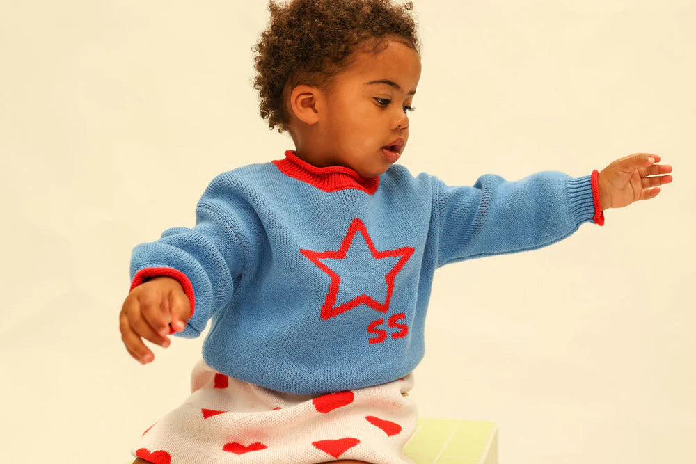 Let us introduce our new knit, Neve. Crafted from 100% cotton, this relaxed-fit sweater features contrasting rib trim that gently rolls at the neckline and cuffs. A bold star graphic on the front adding a playful Sunday Siblings touch. A new-season essential for autumn.