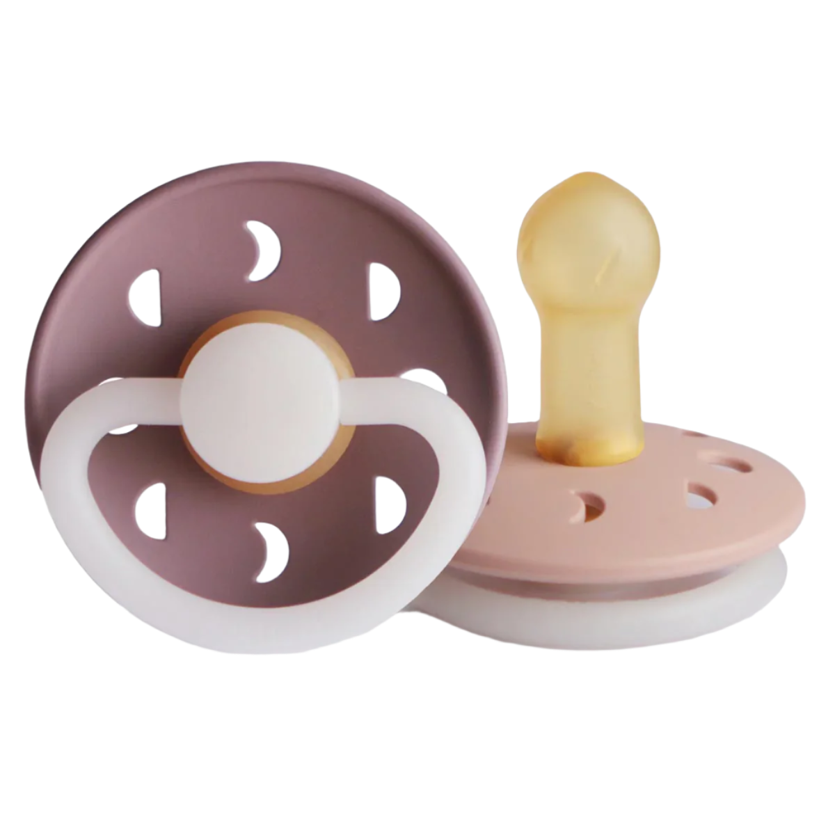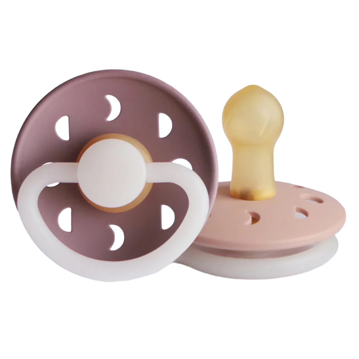 FRIGG Night is equipped with a gentle glow in the dark feature. The handle and knob will glow in the dark and solve the challenge of finding and placing your baby’s pacifier in the middle of the night.