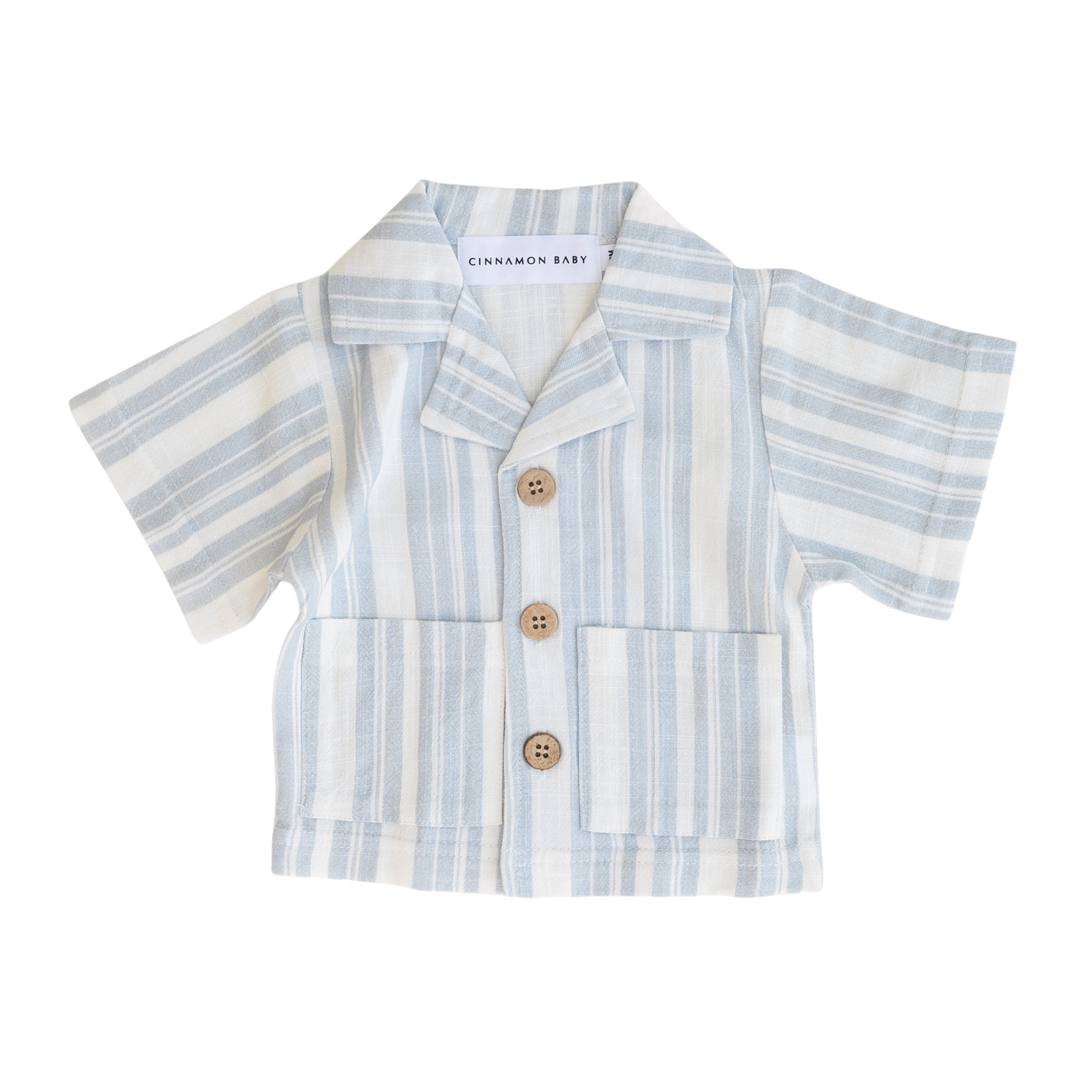 This breezy short-sleeve shirt in soft blue linen stripes brings a classic, coastal feel. Gentle on skin and effortlessly smart for warmer days.