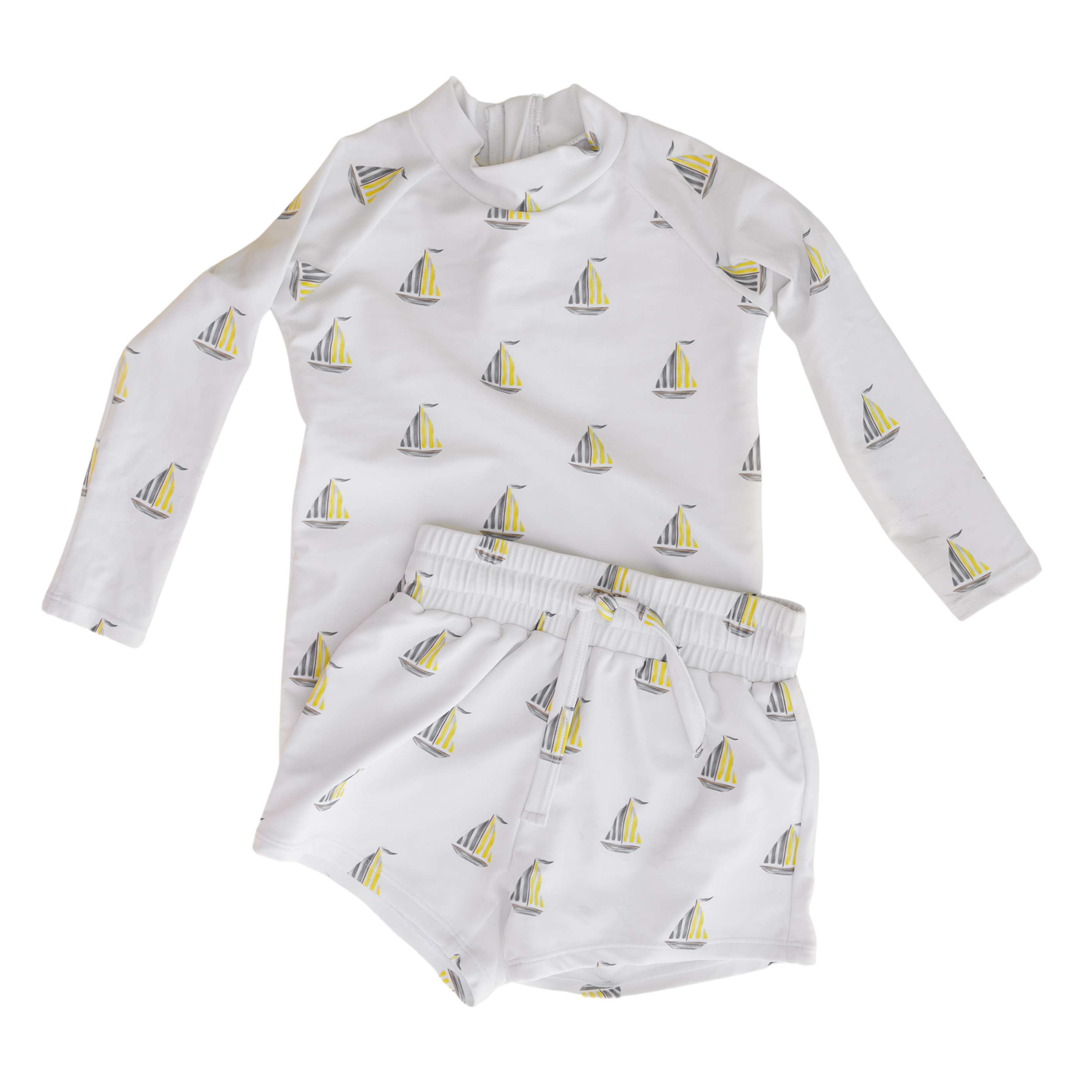 A cheerful swim rashie with an all-over sailboat print that brings a playful touch to beach and pool days. Easy to pair with matching trunks for a fun summer look.