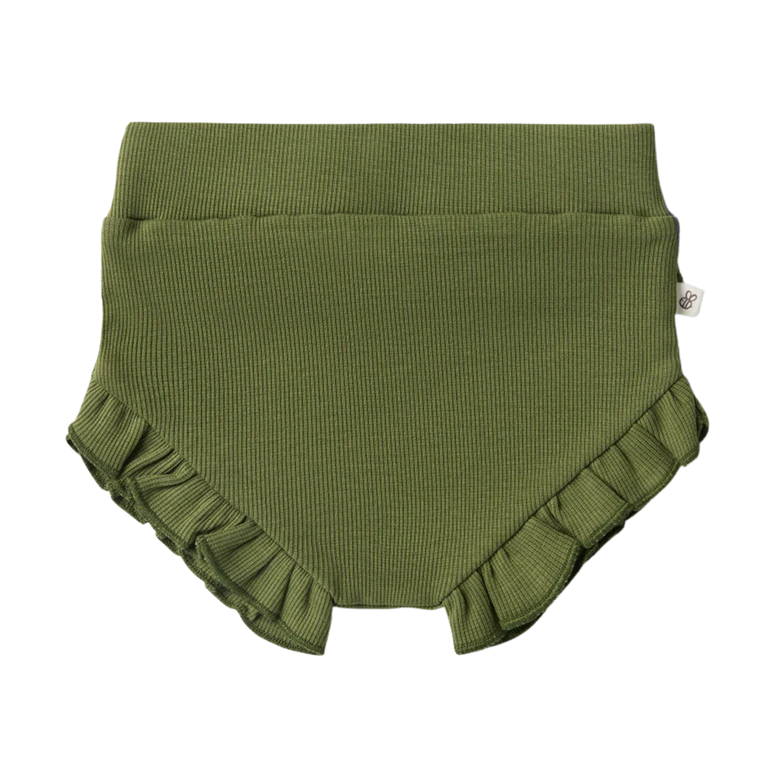 Soft and stretchy, our bloomers are an easy care, fuss-free option that’s simple to coordinate - our Olive bloomers are made with organic cotton rib. They are a perfect match with our organic baby short sleeve bodysuits and will be a go-to bloomer for bub. Our high waist baby bloomers have a gentle, elasticised waistband with a frill across the back and around the legs - for a touch of detail.