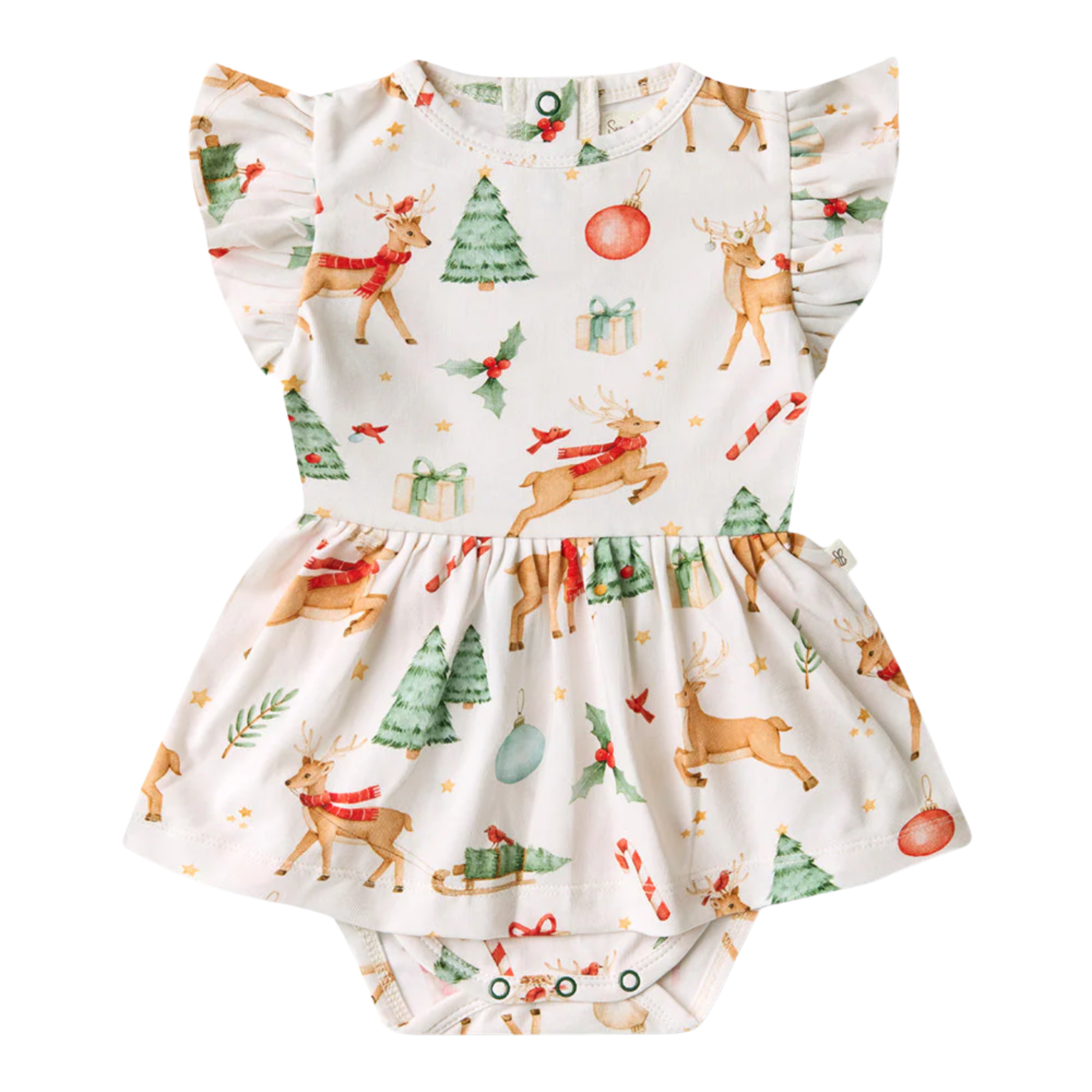 Soft and stretchy, our dresses are easy-care and very comfy for bub. The sizes up to and including size 1 come with a snap underbody to go over a nappy. Size 2 and up doesn't have the snap body feature. We have really focused on the details and ensured the dresses up to size 1 are short enough so that a baby can crawl and not trip over the skirt. Size 2 and over, when they're walking, is a bit longer.