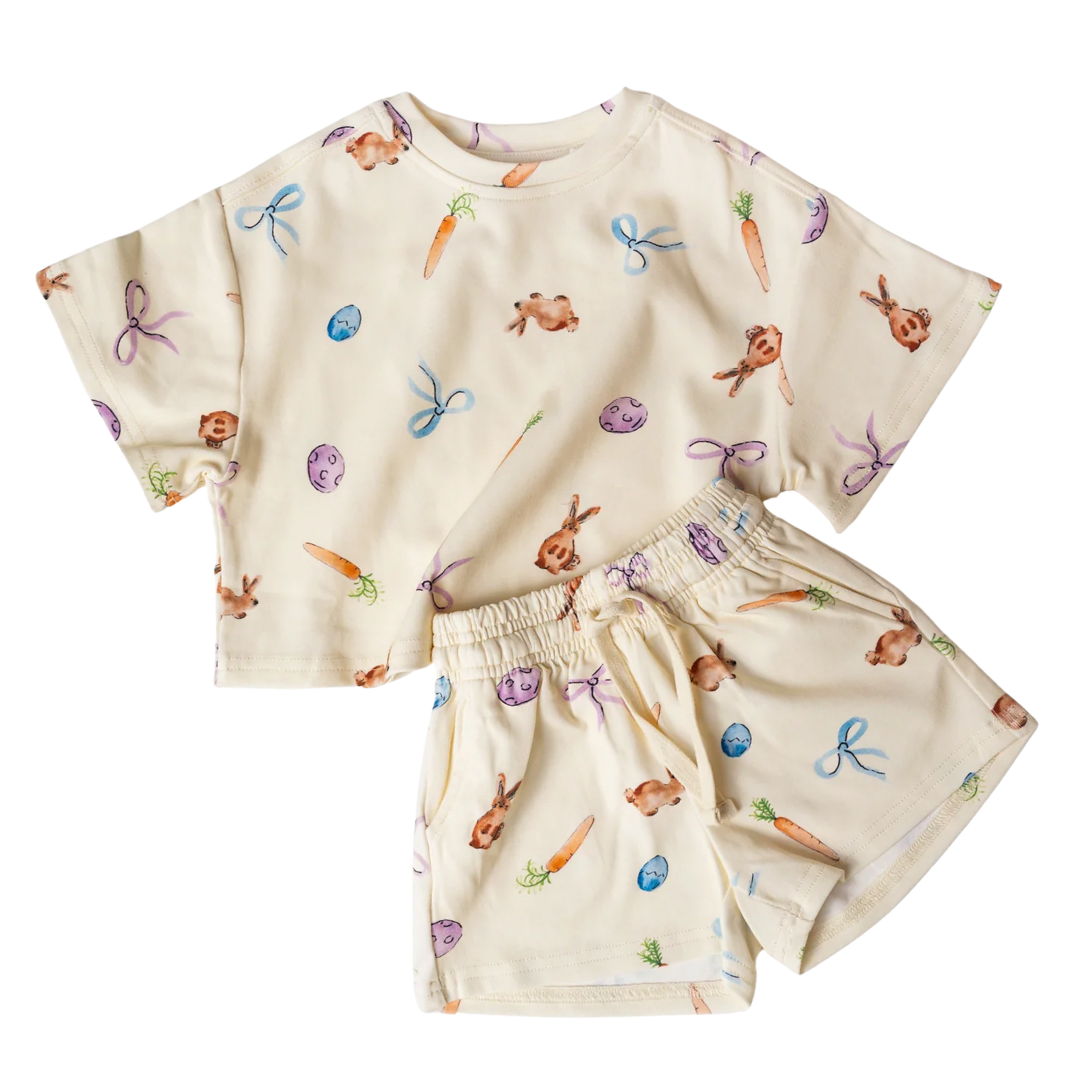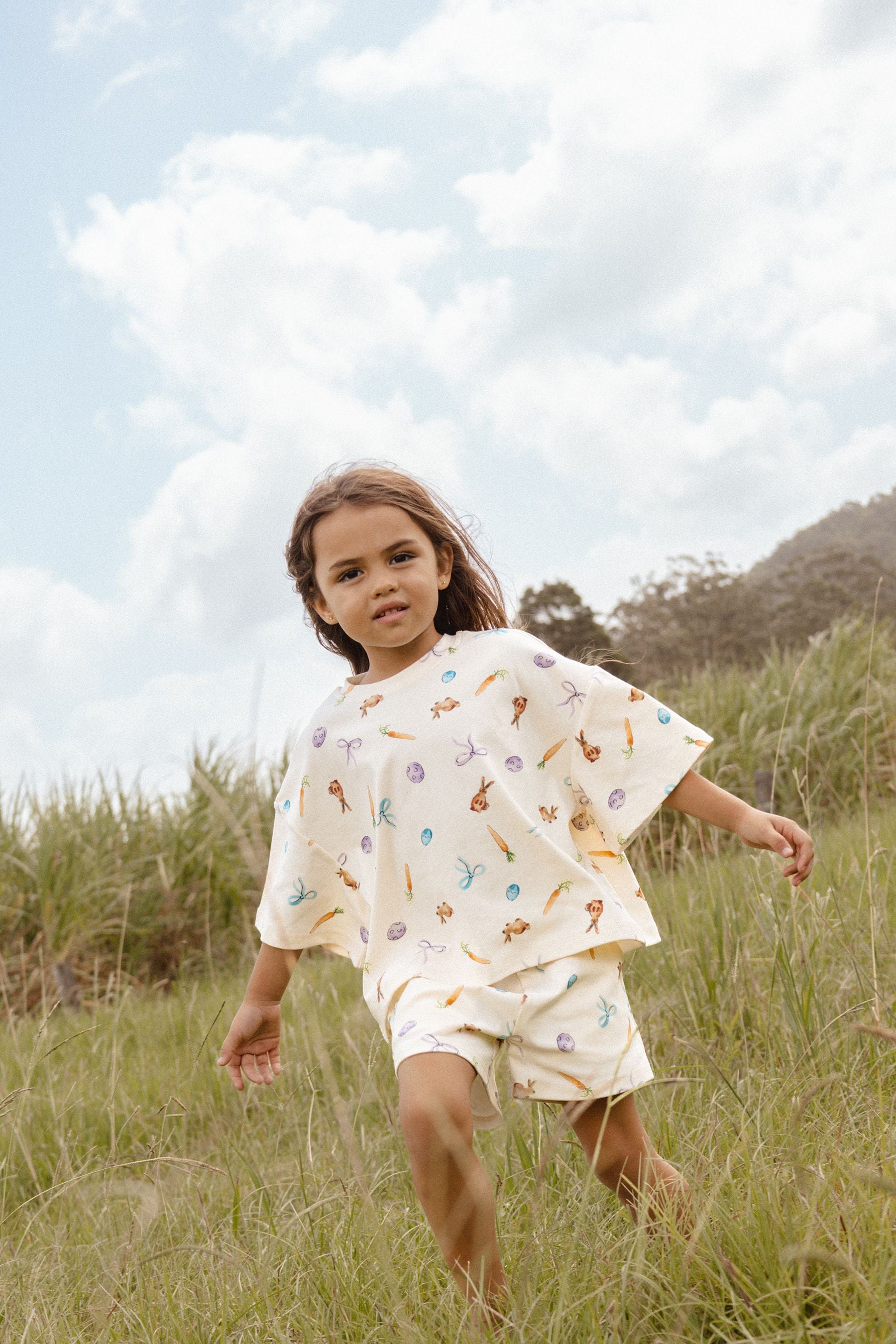 Hop into Easter fun with our Easter Hunt Set! Covered in playful bunnies, carrots, and eggs, this charming set is full of festive cheer. Comfortable, cute, and made for little ones to move and play in, it’s the perfect outfit for celebrating all the joys of the season.