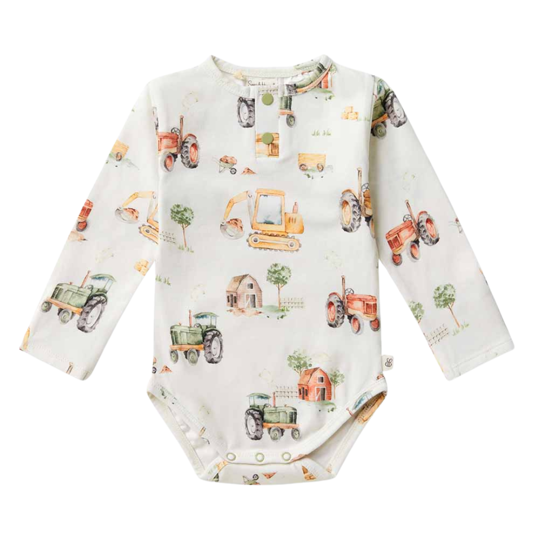 Snuggle hunny diggers & tractors long sleeve bodysuit