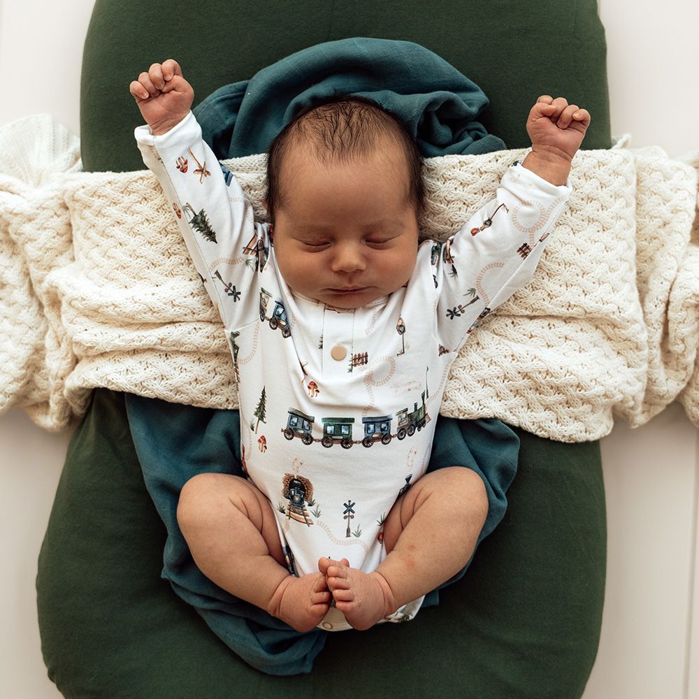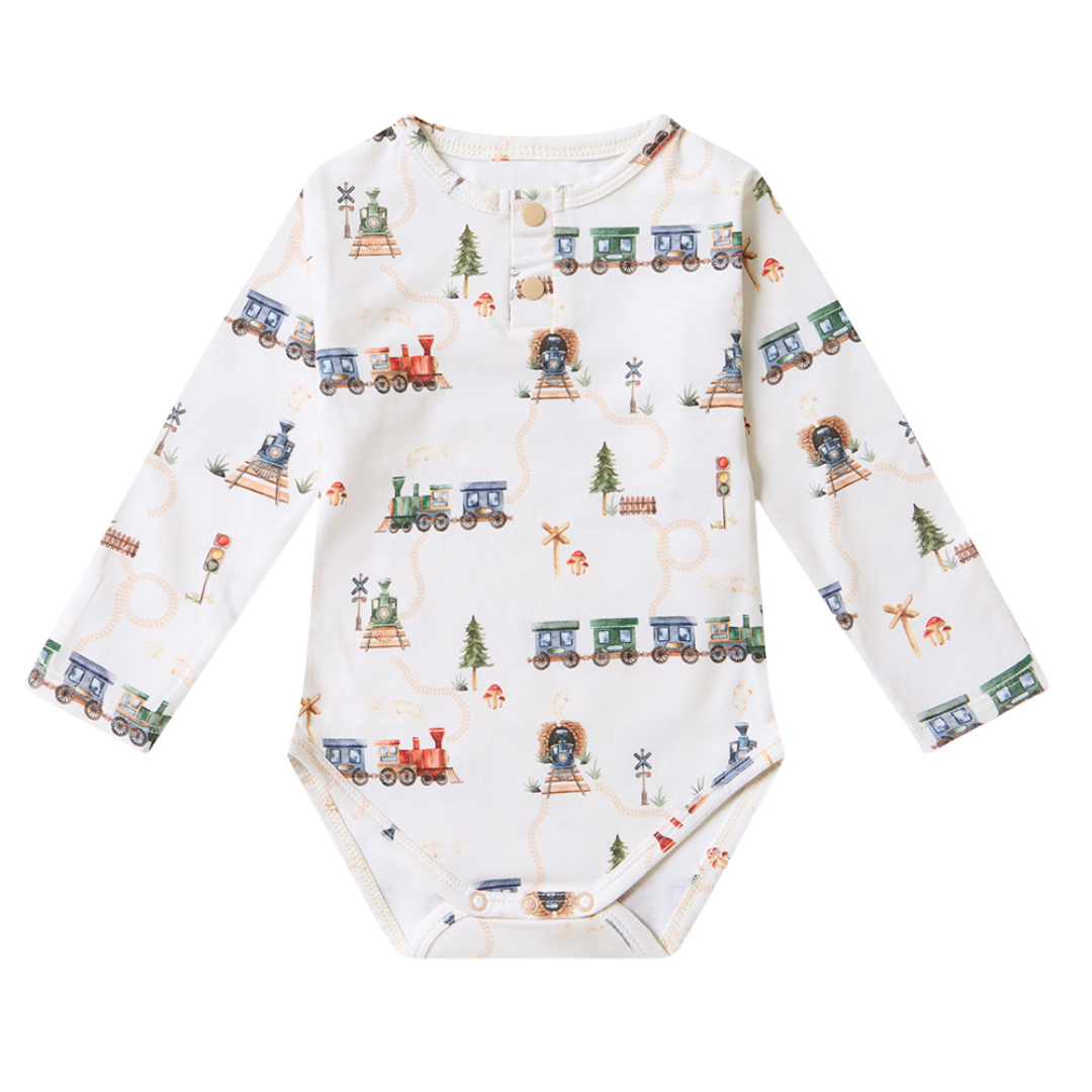 SNUGGLE HUNNY TRAINS LONG SLEEVE ORGANIC BODYSUIT