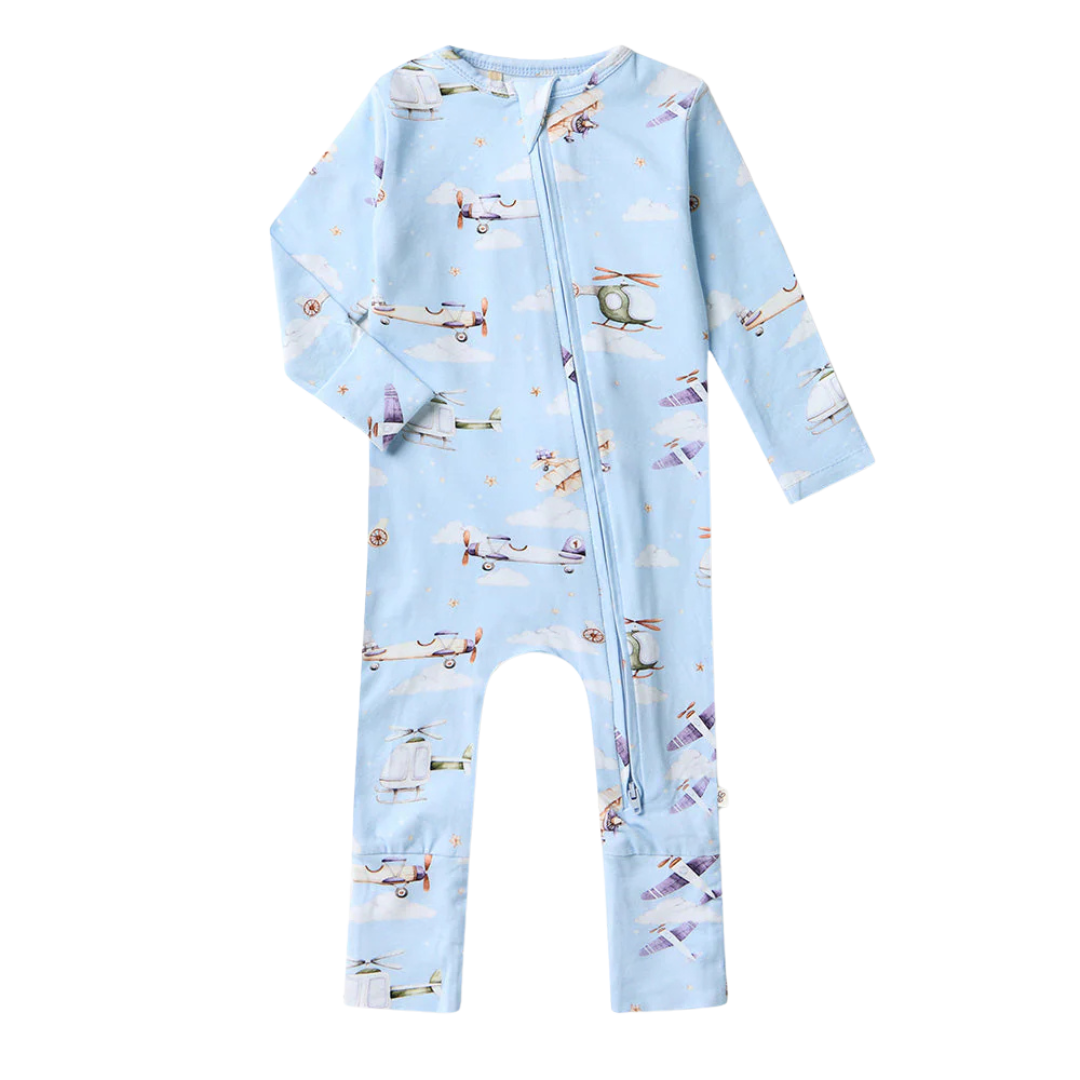 This design includes a two way zip, making it easy to get bub in and out for naptime and nappy change. Foldable hand mittens are included for newborn to 6 months and help stop little nails from scratching and also keep hands warm when the weather is cool. Bub can wear the mittens open or closed. For sizes from 6 months upwards, the mittens are replaced with a stylish cuff. Foot mittens are also an important feature and these are included on all sizes. Who doesn’t love to tuck in those little feet for bedtime to keep warm?