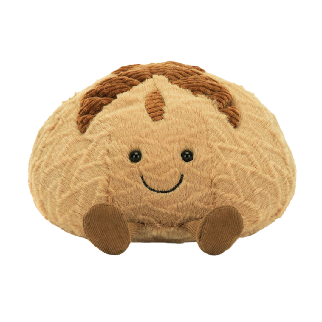 There is nothing sour about Amuseables Sourdough! This loveable loaf is baked to perfection in textured beige and brown fur. With a big, stitched smile and fine cord legs, this sourdough sweetie is the perfect gift to raise joy every day!
