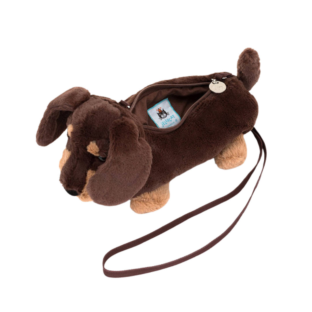 The Otto Sausage Dog Bag is the ultimate accessory for city strolls, complete with comfy strap, zipped body, and that unmistakably elegant shape.