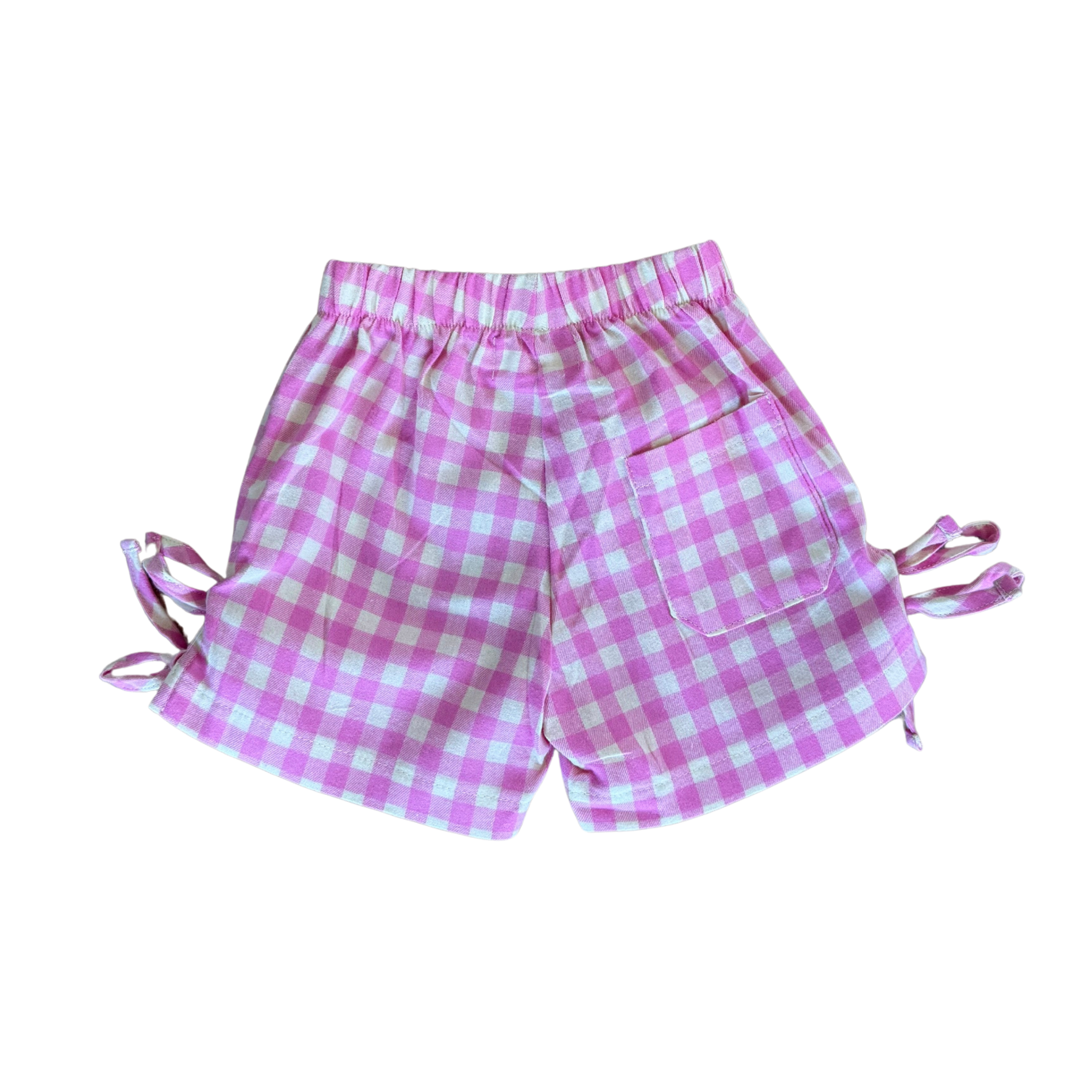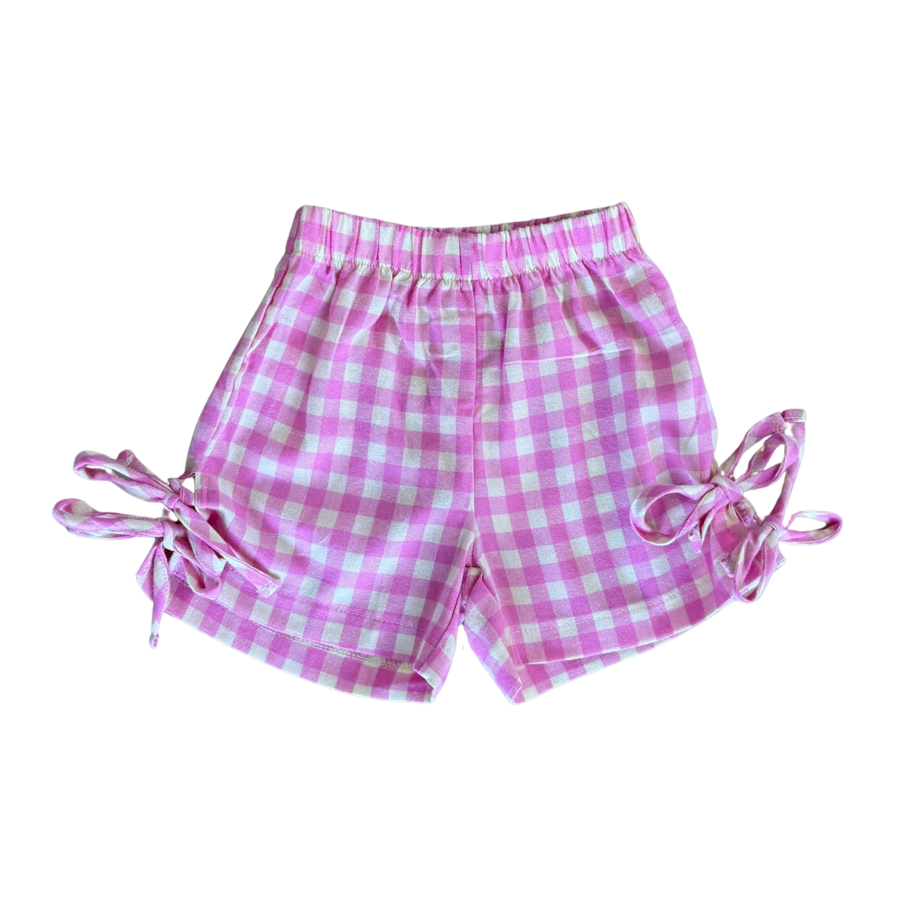 Our pink and yellow gingham shorts are pretty with personality. They feature two ties on each side which become the perfect little bow details.