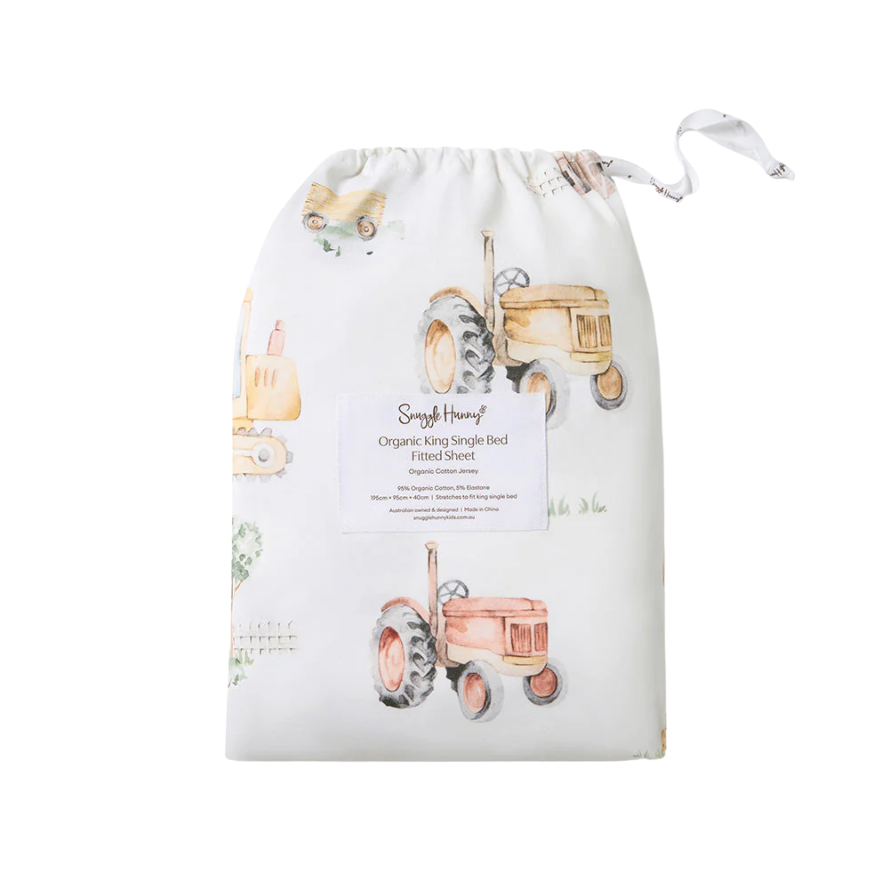 Snuggle Hunny's fitted bed sheets are made from our signature organic jersey cotton - snuggly soft and certified organic! Available in a range of our popular hand-painted prints, including Diggers & Tractors.