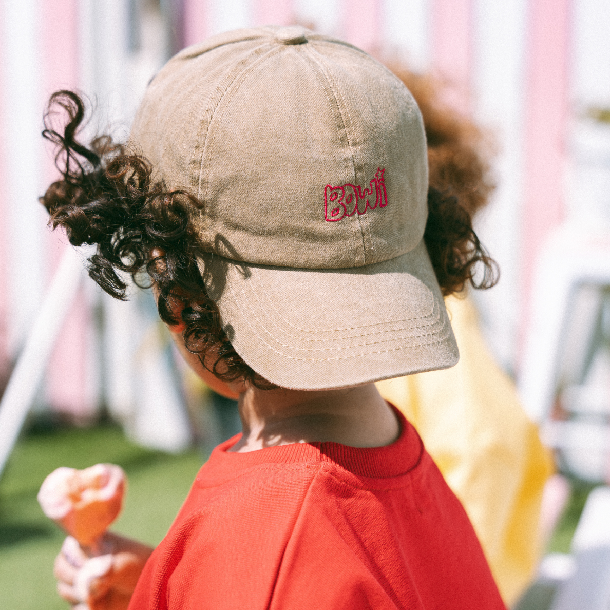 Made from soft washed cotton in a neutral sand tone, this cap features bright Bowi embroidery front and centre.