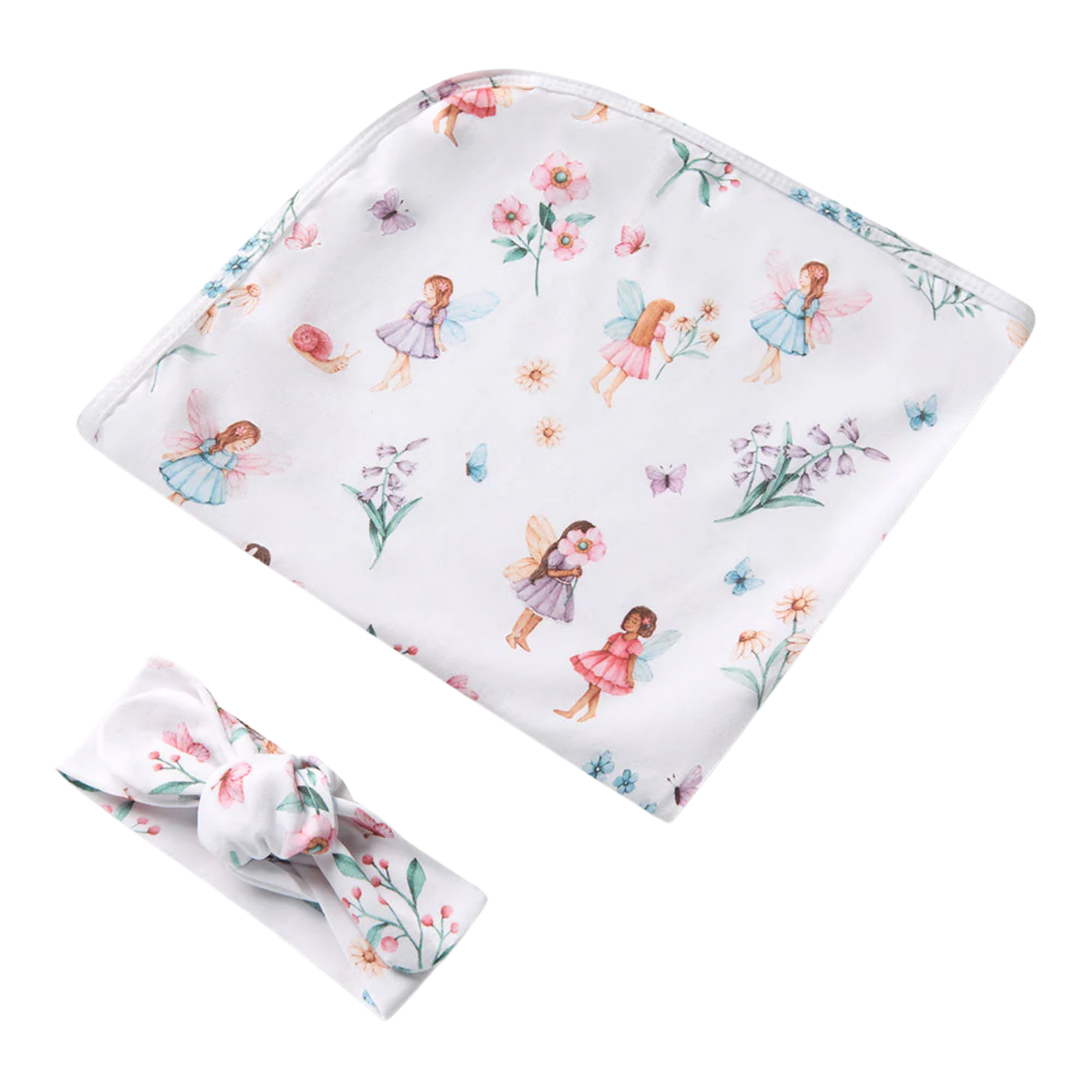 Snuggle hunny fairy garden jersey wrap & topknot set