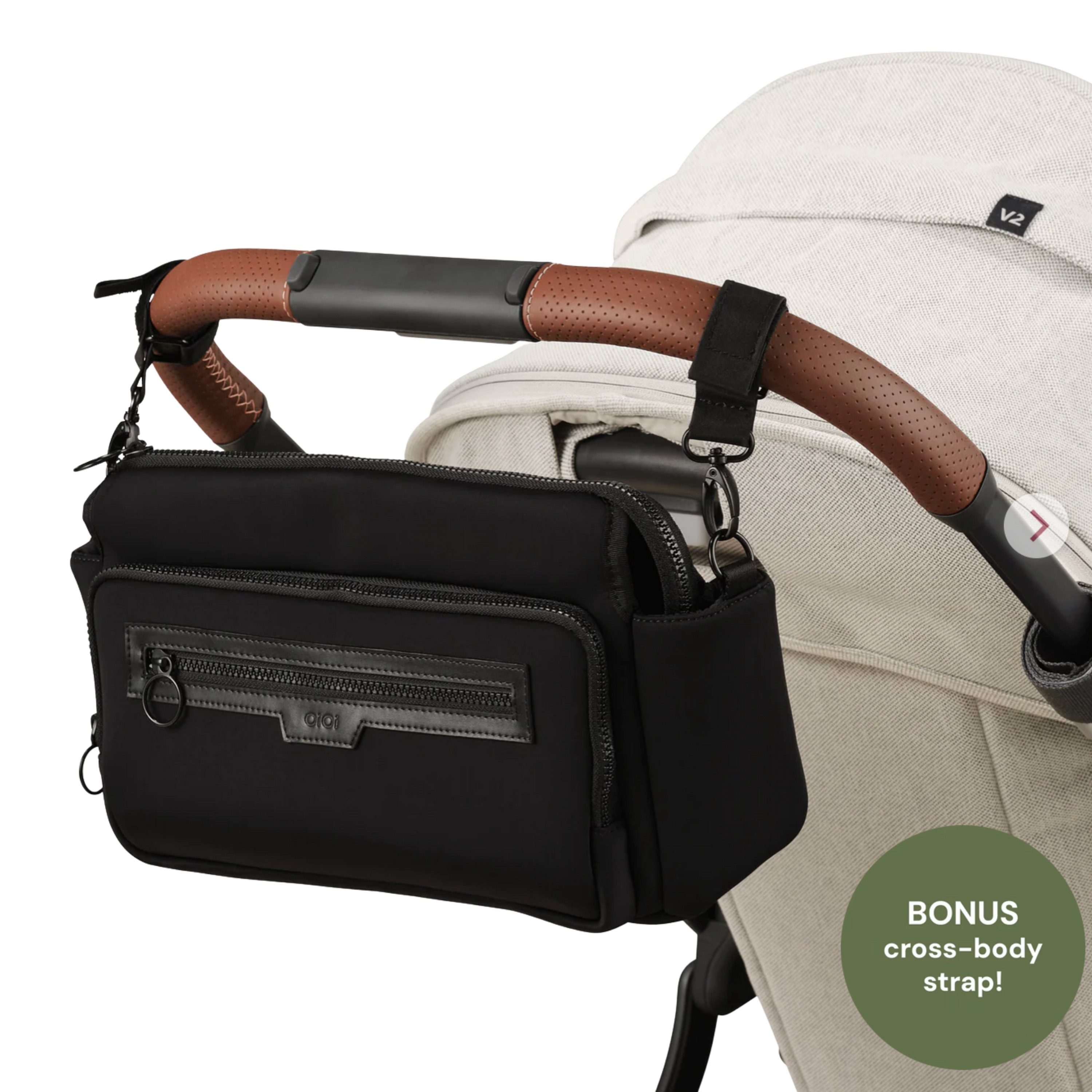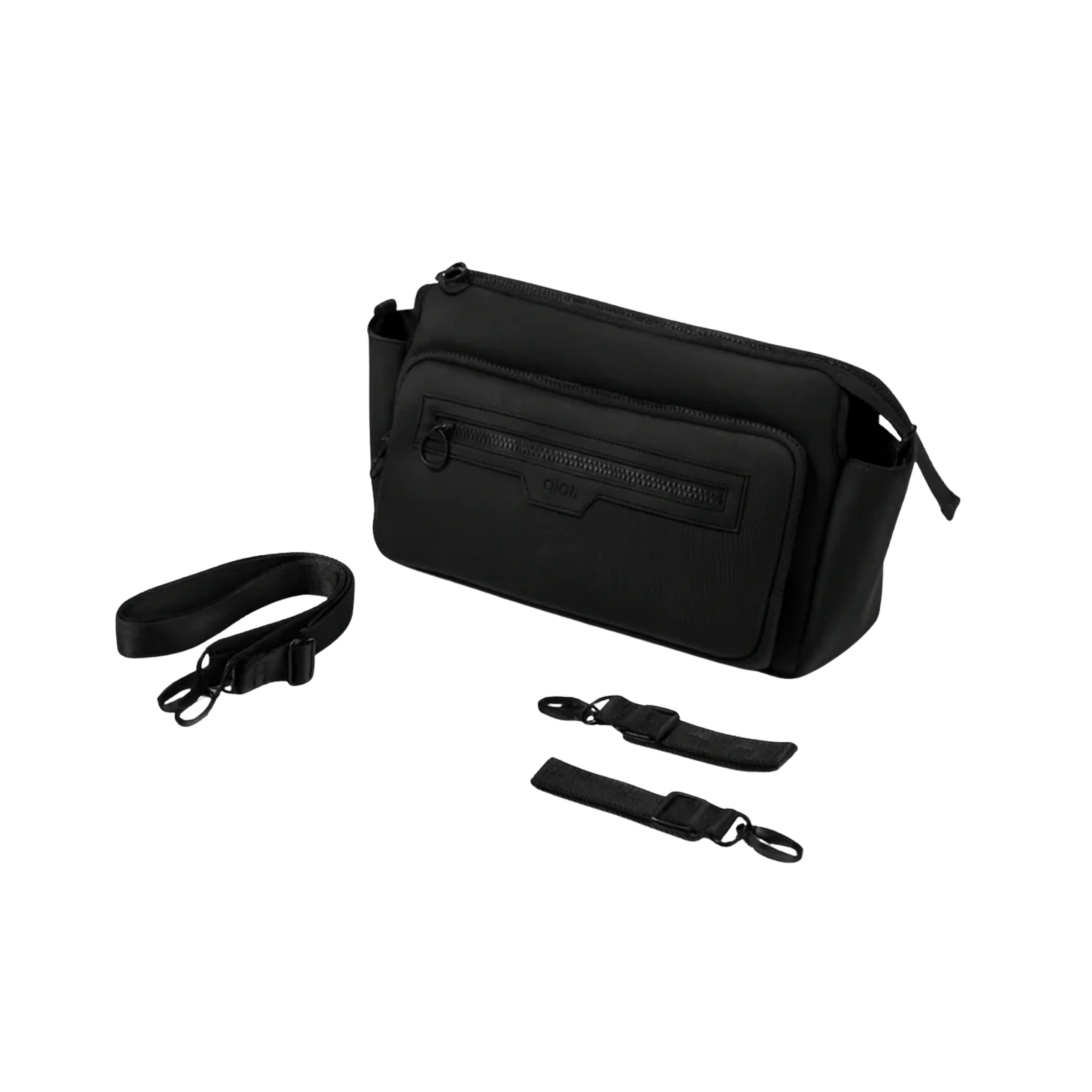 Stay effortlessly organised with the original OiOi Multitasker Pram Caddy — your go-to for quick outings when you don’t need the full nappy bag. It features a secure zip-top closure, a built-in insulated bottle holder, three extra pockets for easy organisation, and seamlessly converts into a crossbody bag. Crafted from durable black neoprene with a water-resistant lining, it’s made for parents who value both function and style.