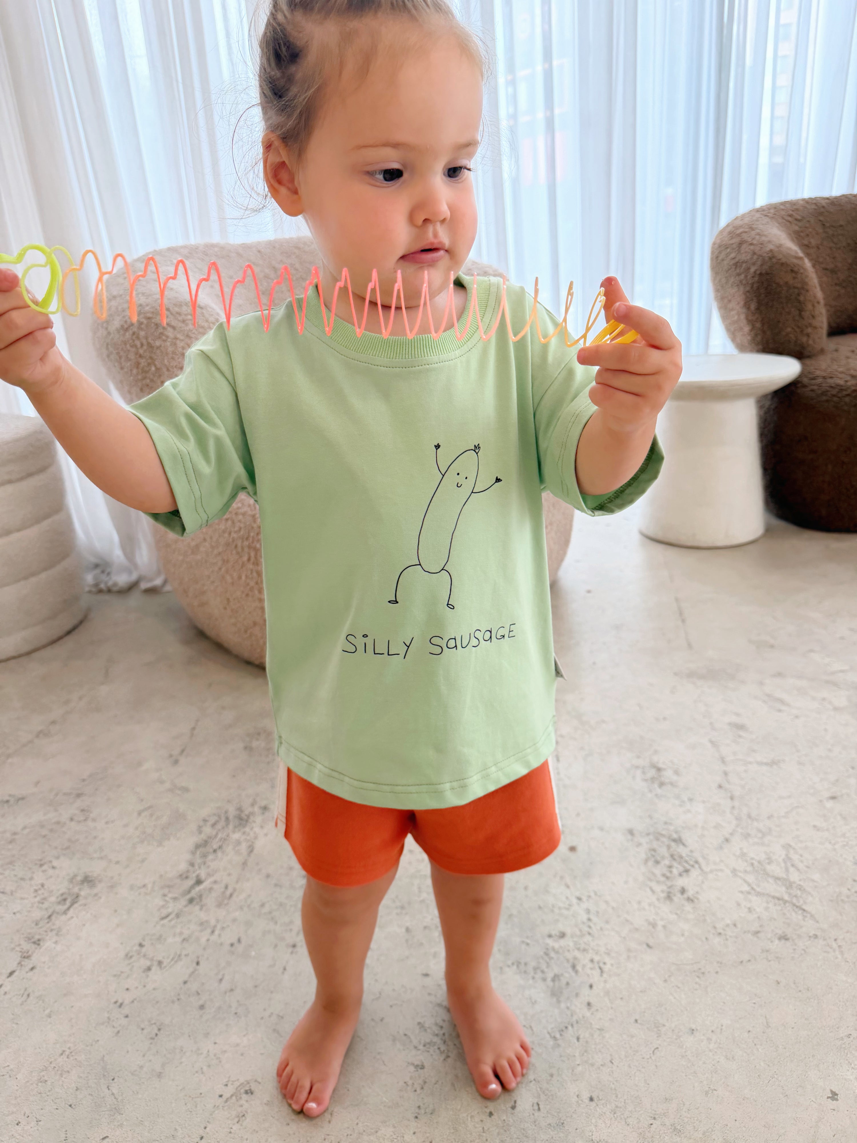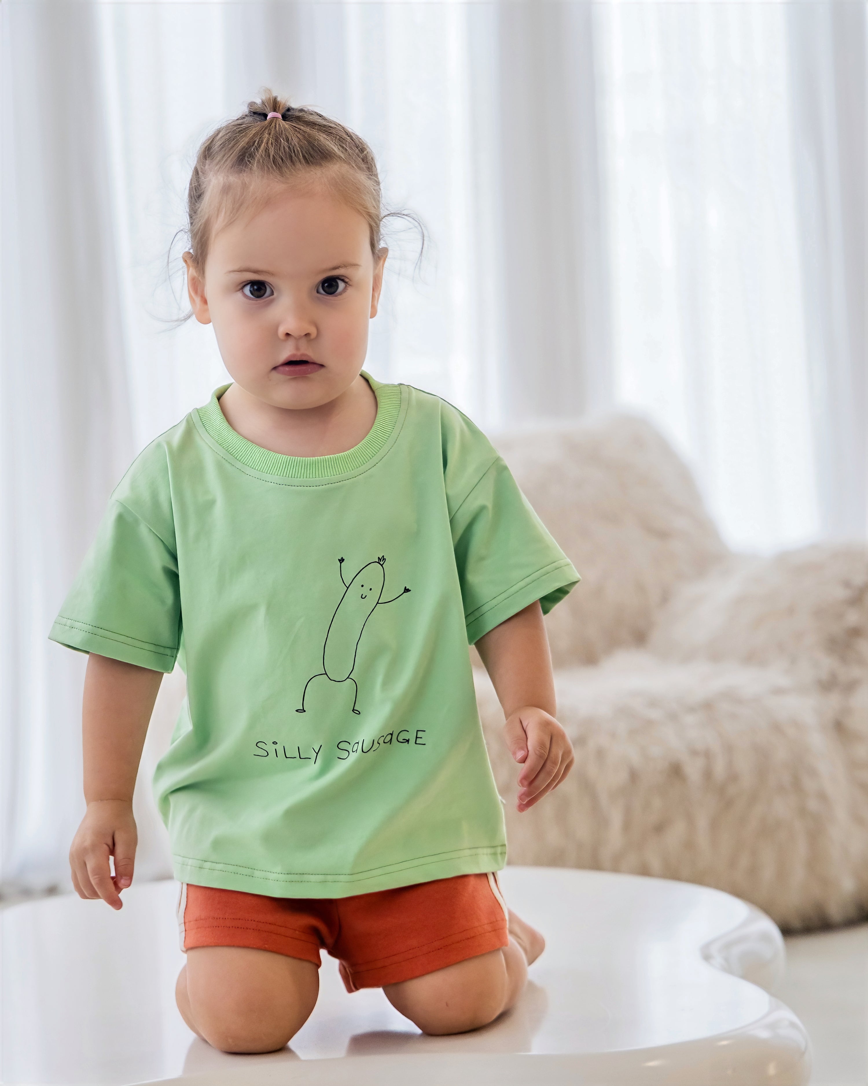 Featuring our Cheeky Chops print on a soft matcha green base, this one’s packed with personality—just like your little love.