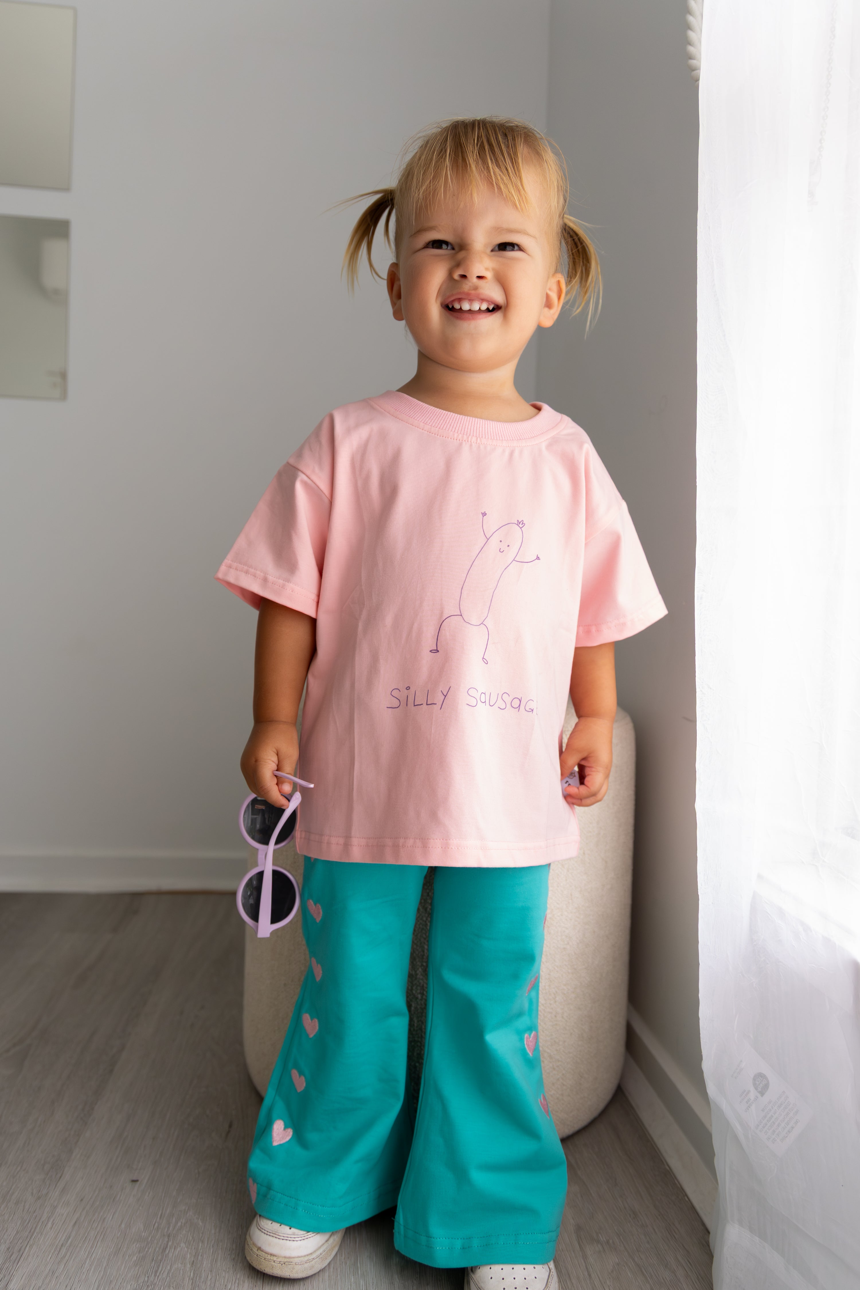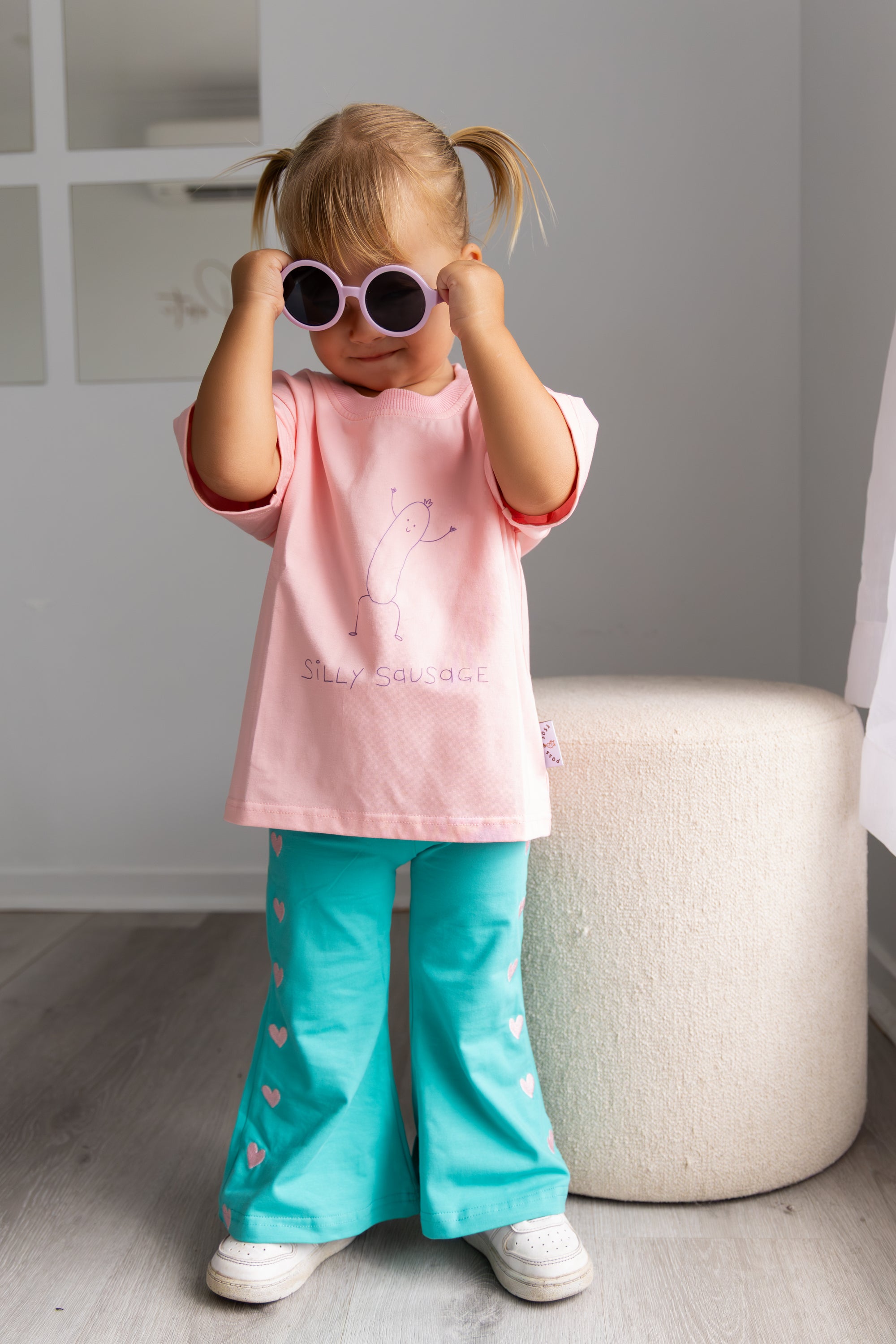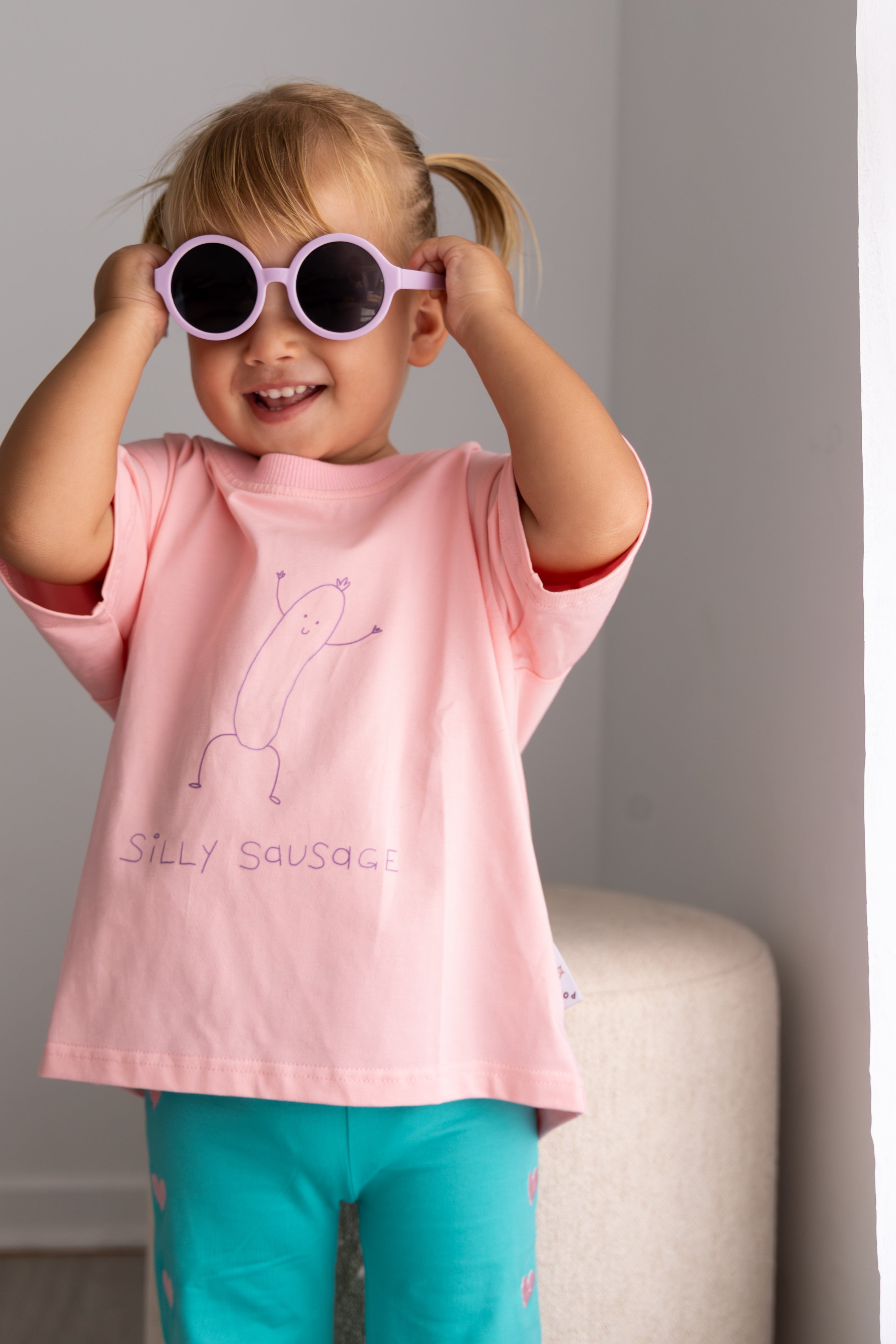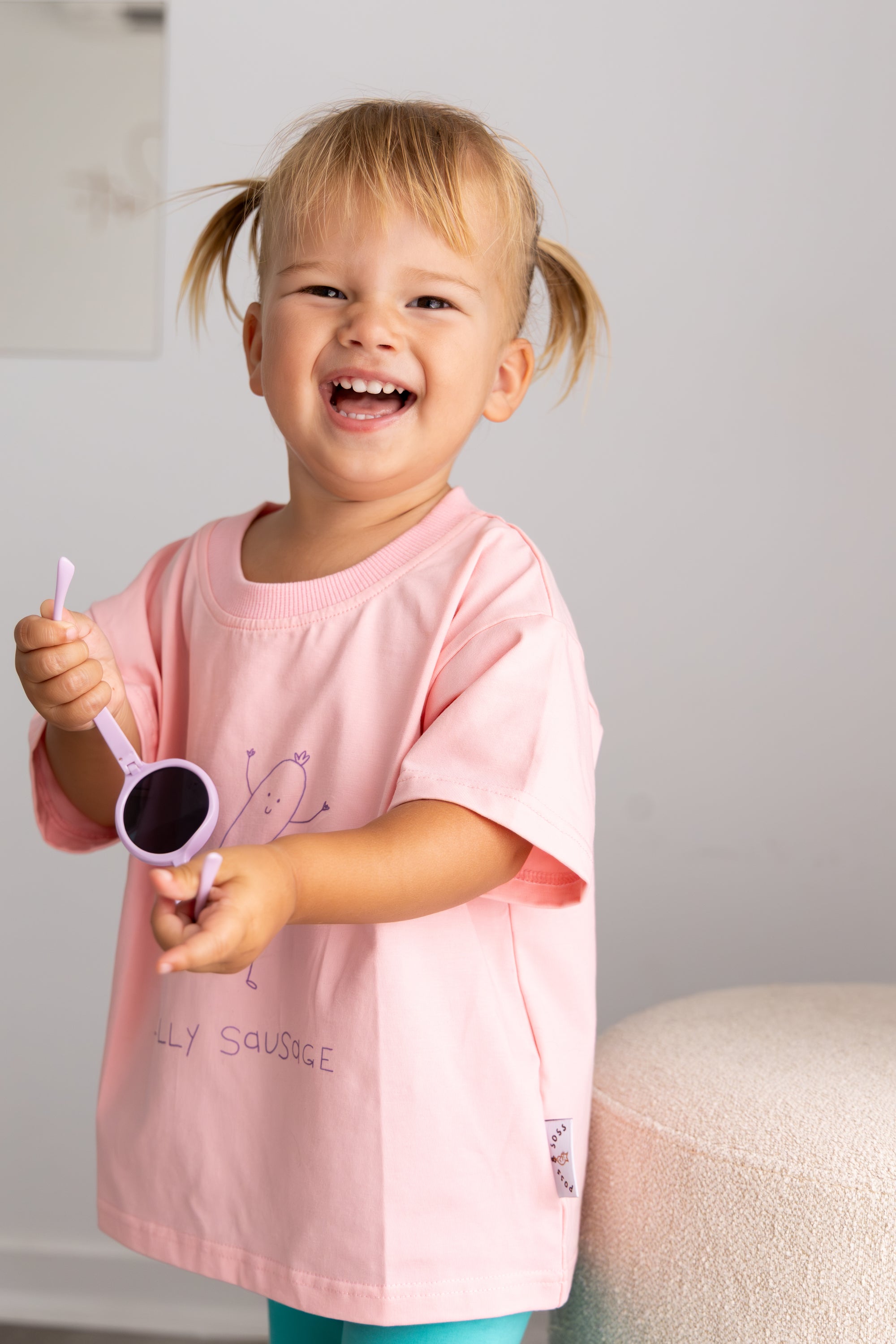 Featuring a purple Silly Sausage print on a soft pink base, this one’s packed with personality—just like your little love.