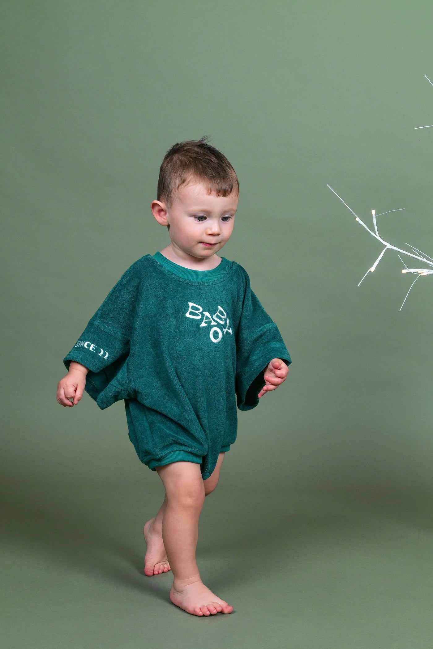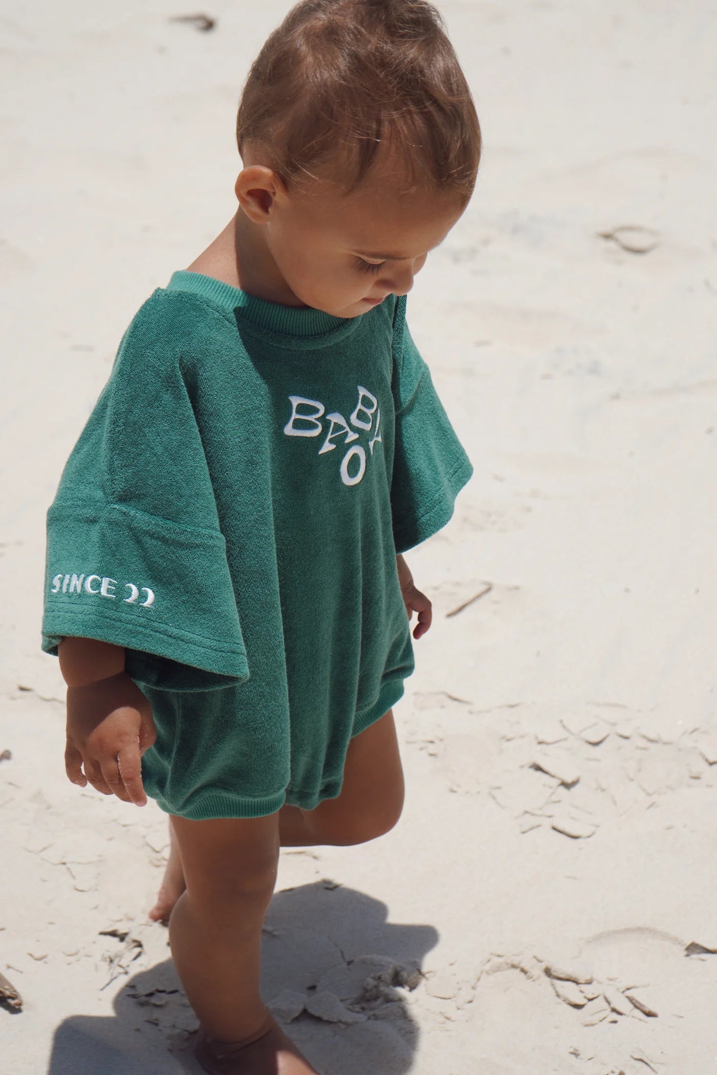 BABY O THE LABEL TERRY LOGO ROMPER - EMERALD