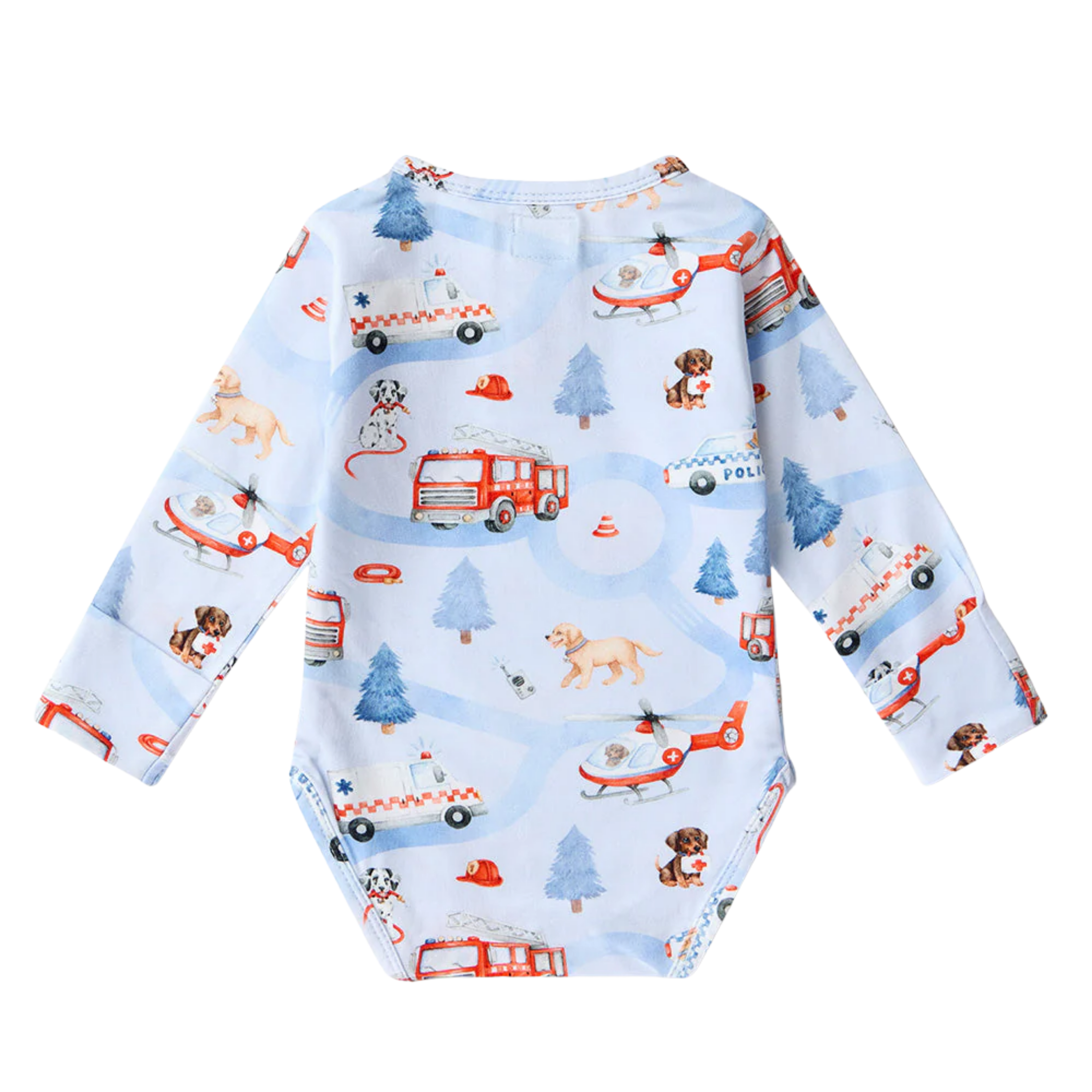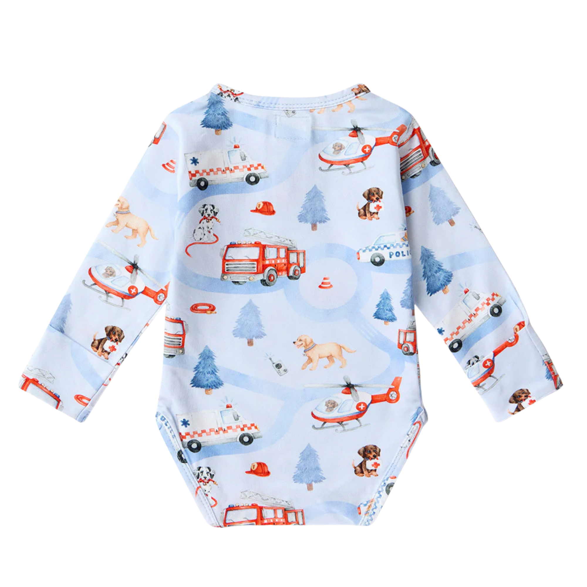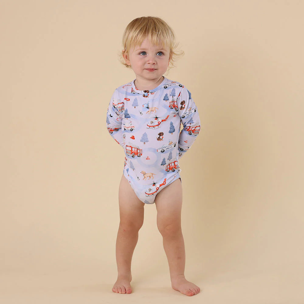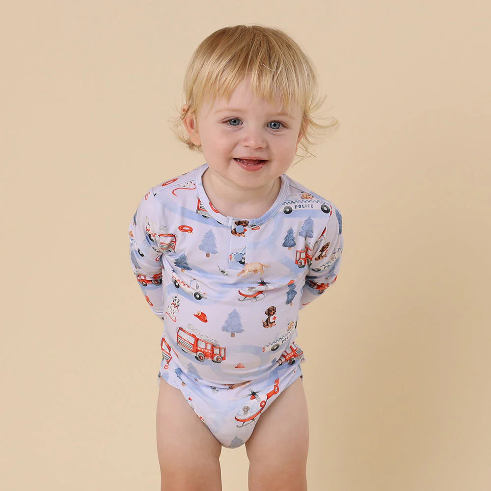 Soft and stretchy, our bodysuits are easy-care and coordinate well with our pants and shorts. To The Rescue is part of our Things That Go collection.
