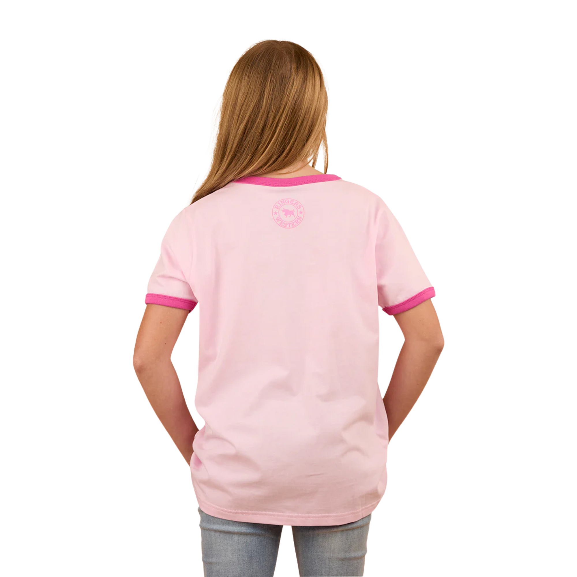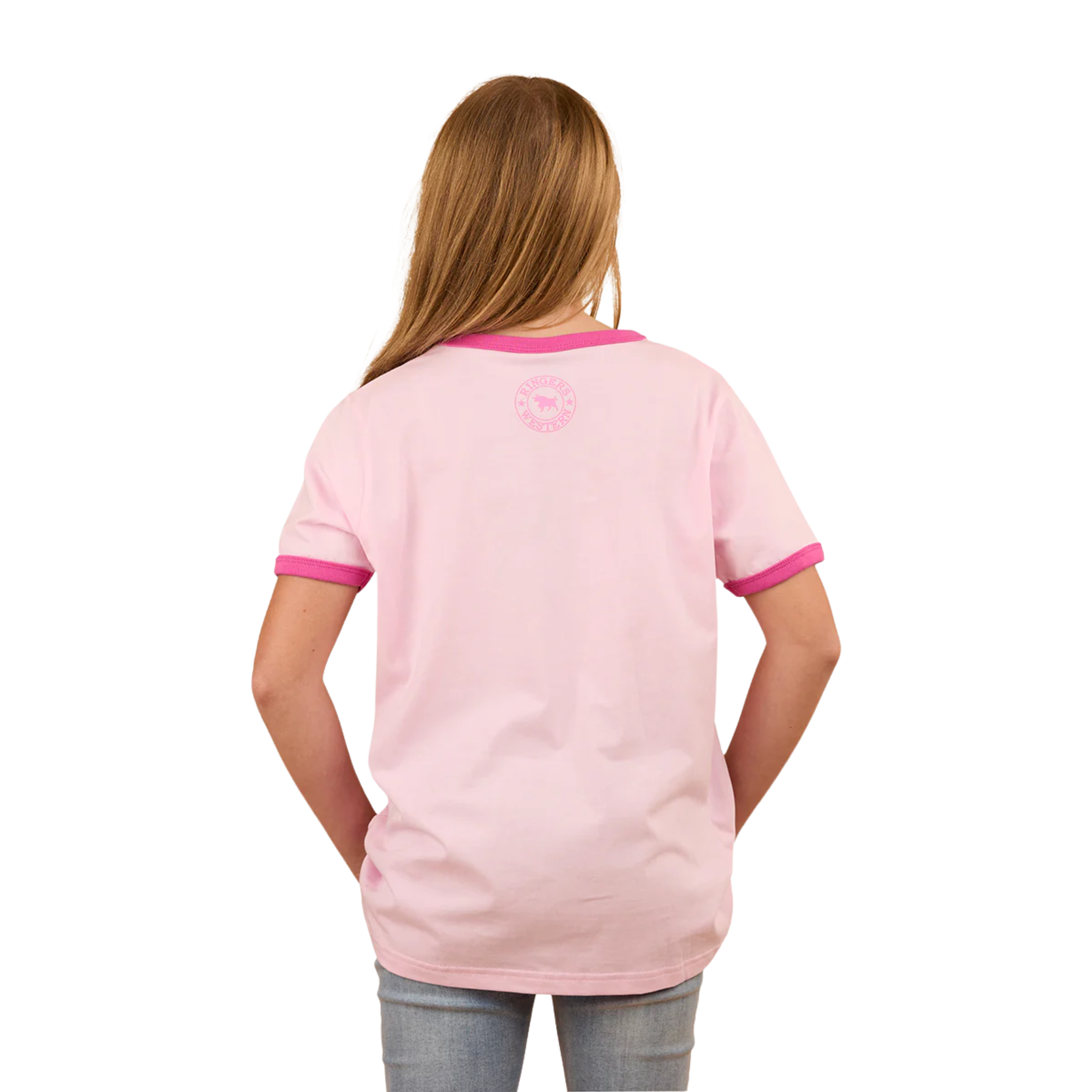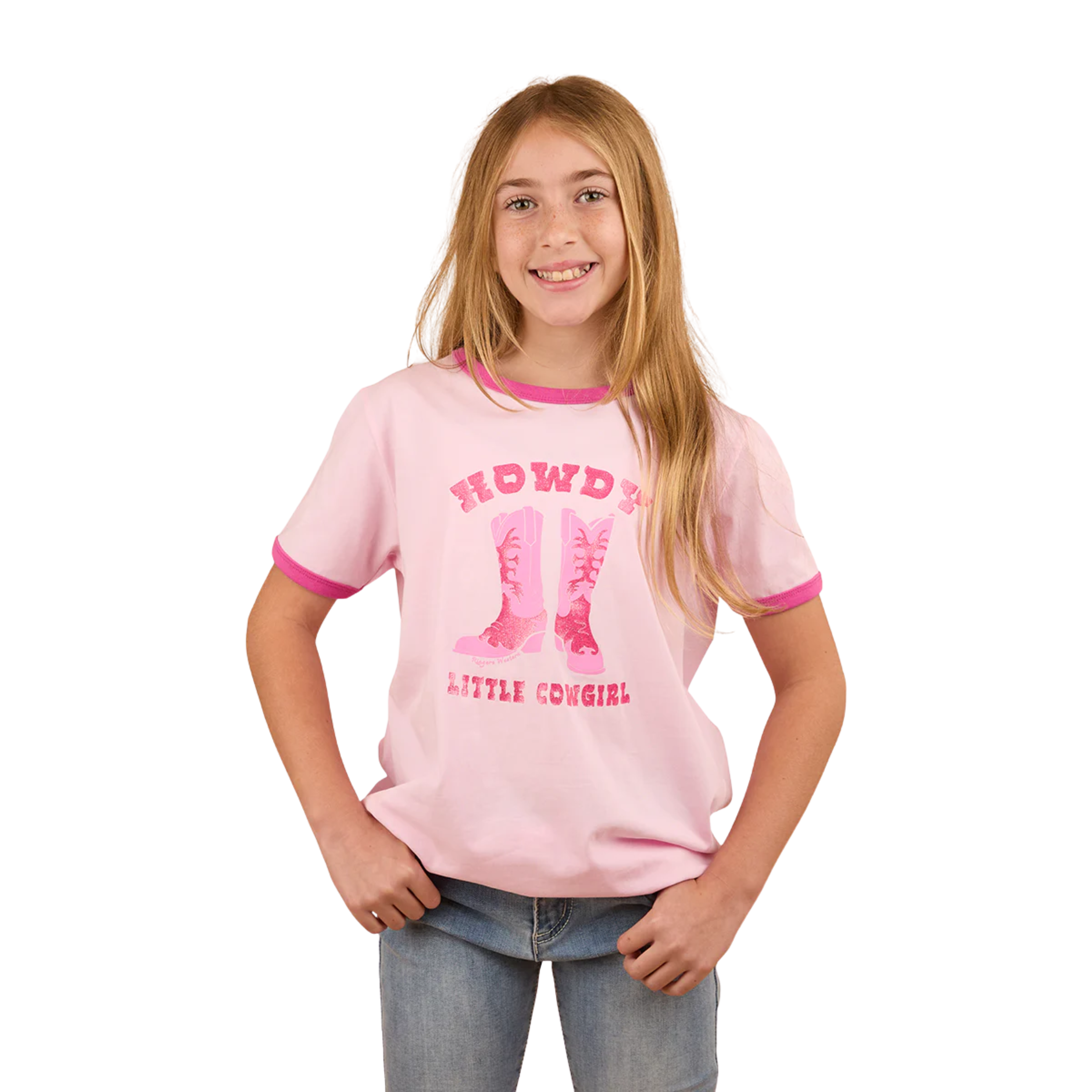 This quintessential country tee is a must have for all apprentice cowgirls in training. Crafted from soft and supple cotton jersey, the Howdy Cowgirl boasts unmatched comfort and breathability while being a durable option. The classic fitting ringer style provides a neat and slightly tailored fit that can be tucked into a pair of jeans or worn untucked - depending on personal preference. Contrasting neck and sleeve binding adds a vibrant pop of colour with a touch of vintage charm, whilst an adorable signature boots graphic completes the look in true western style.