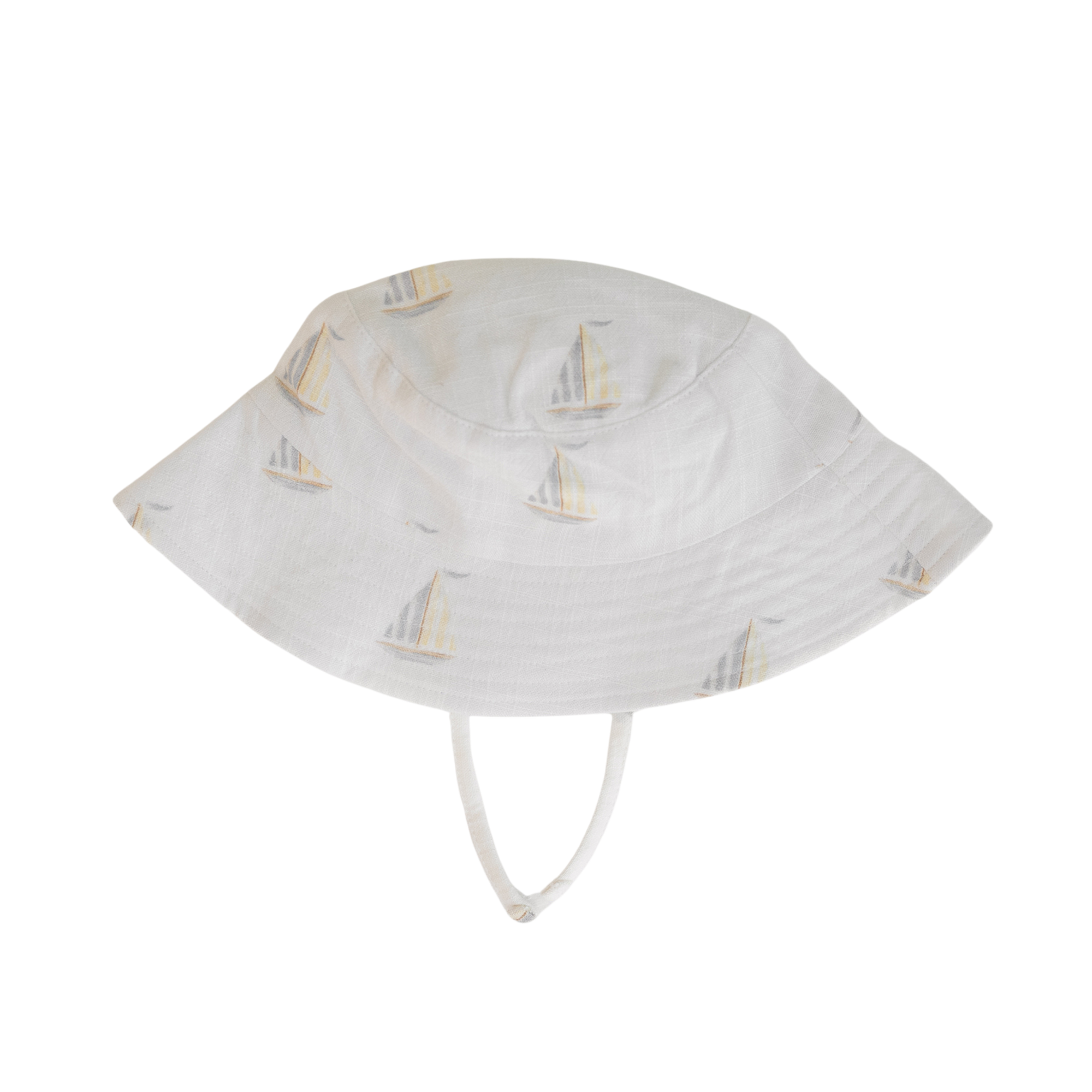 Keep little faces shaded with this sailboat-printed bucket hat. Designed with an adjustable chin strap for the perfect fit.