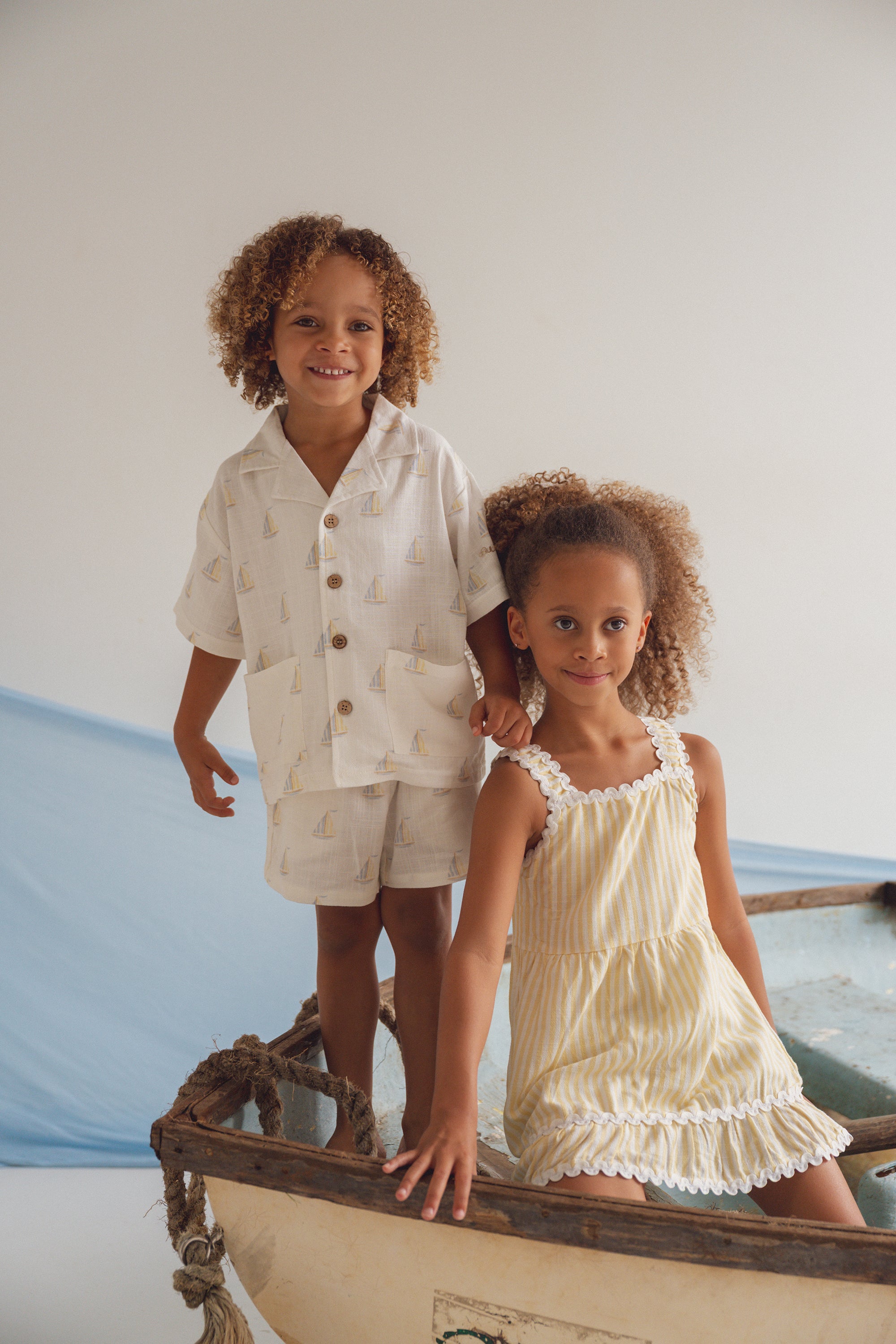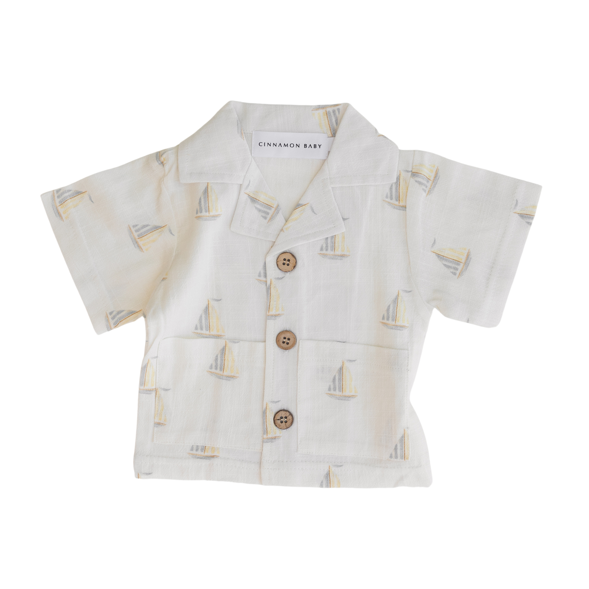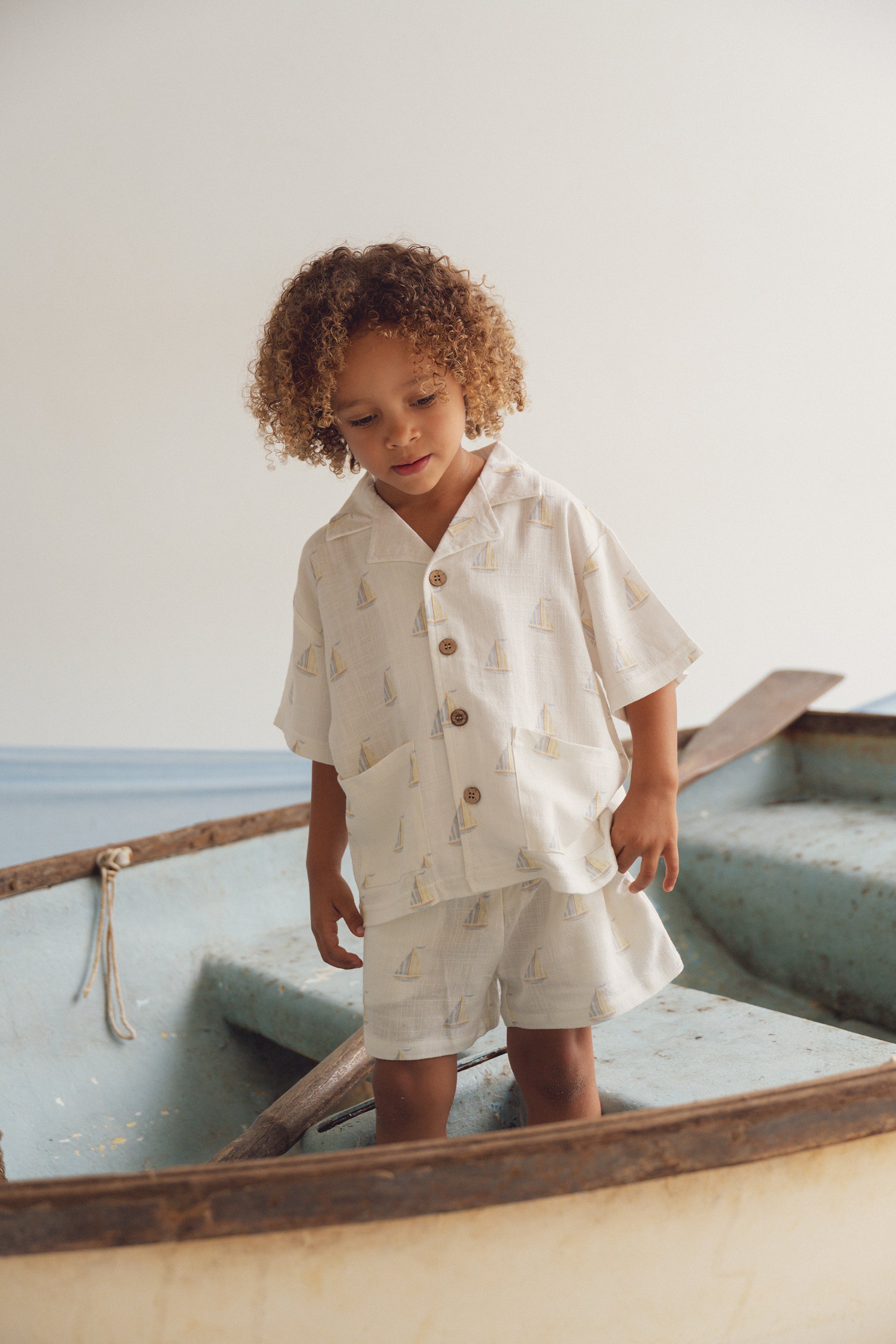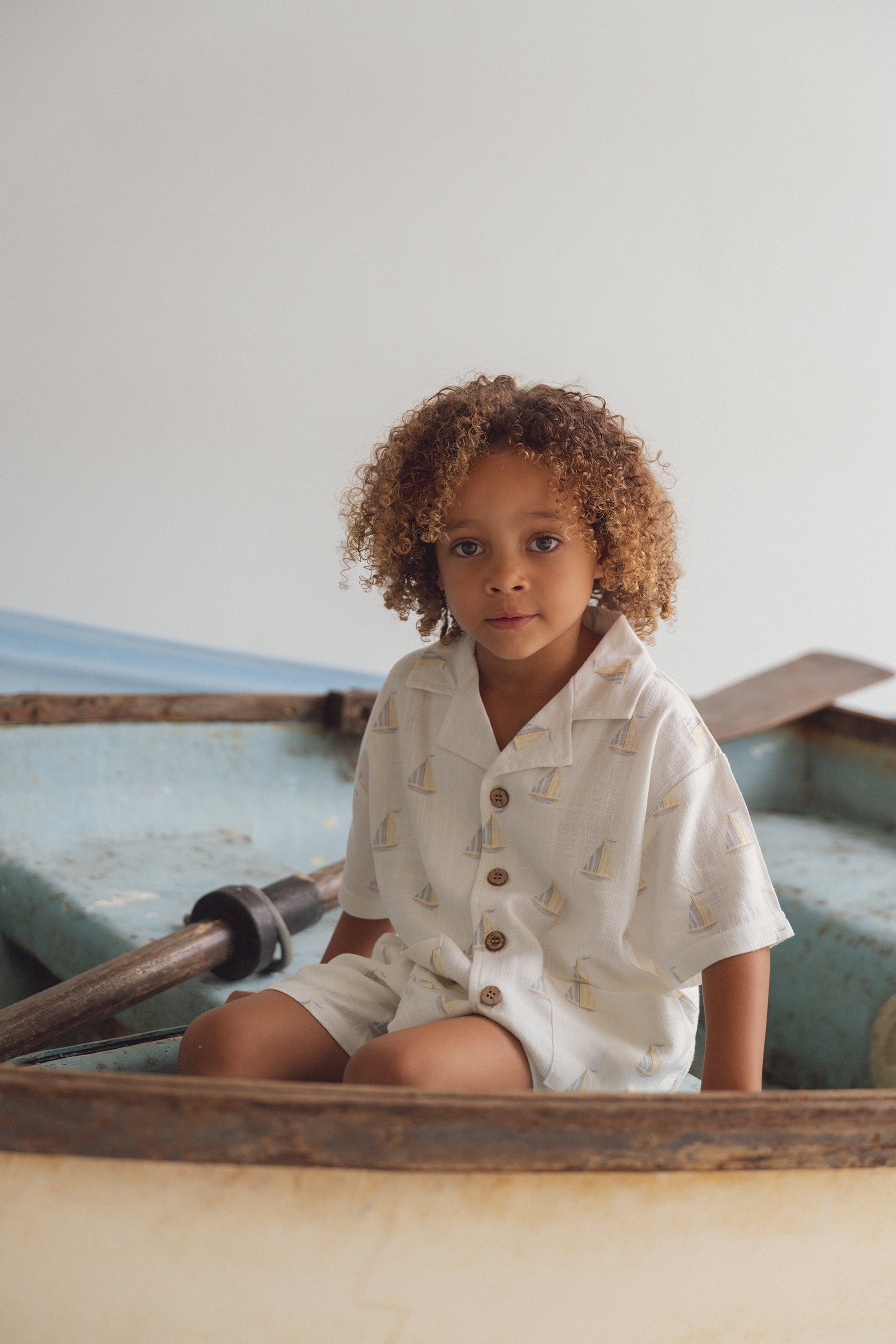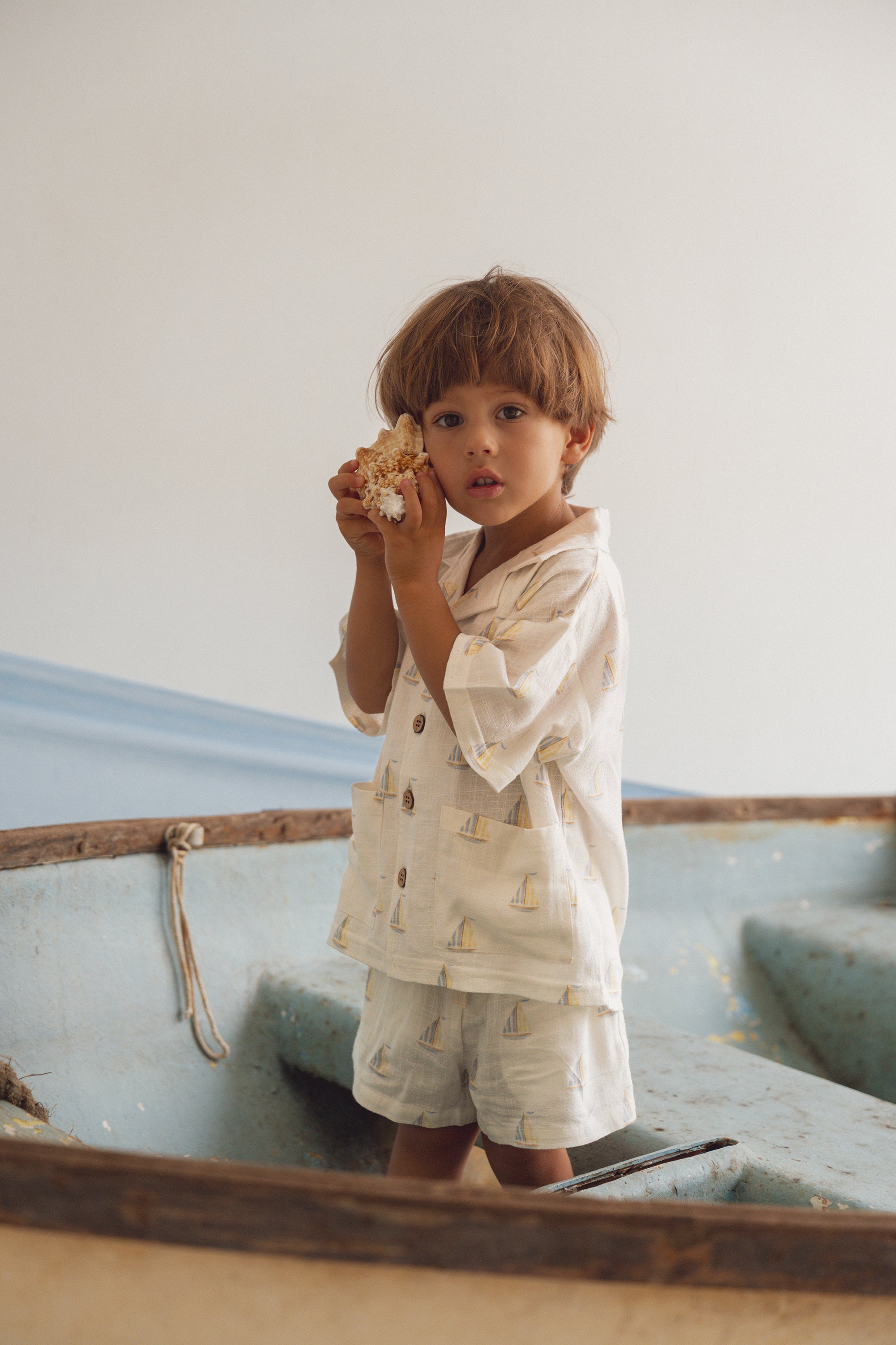 A whimsical take on summer dressing, this linen shirt features an all-over sailboat print. Lightweight and breathable for every sunny outing.