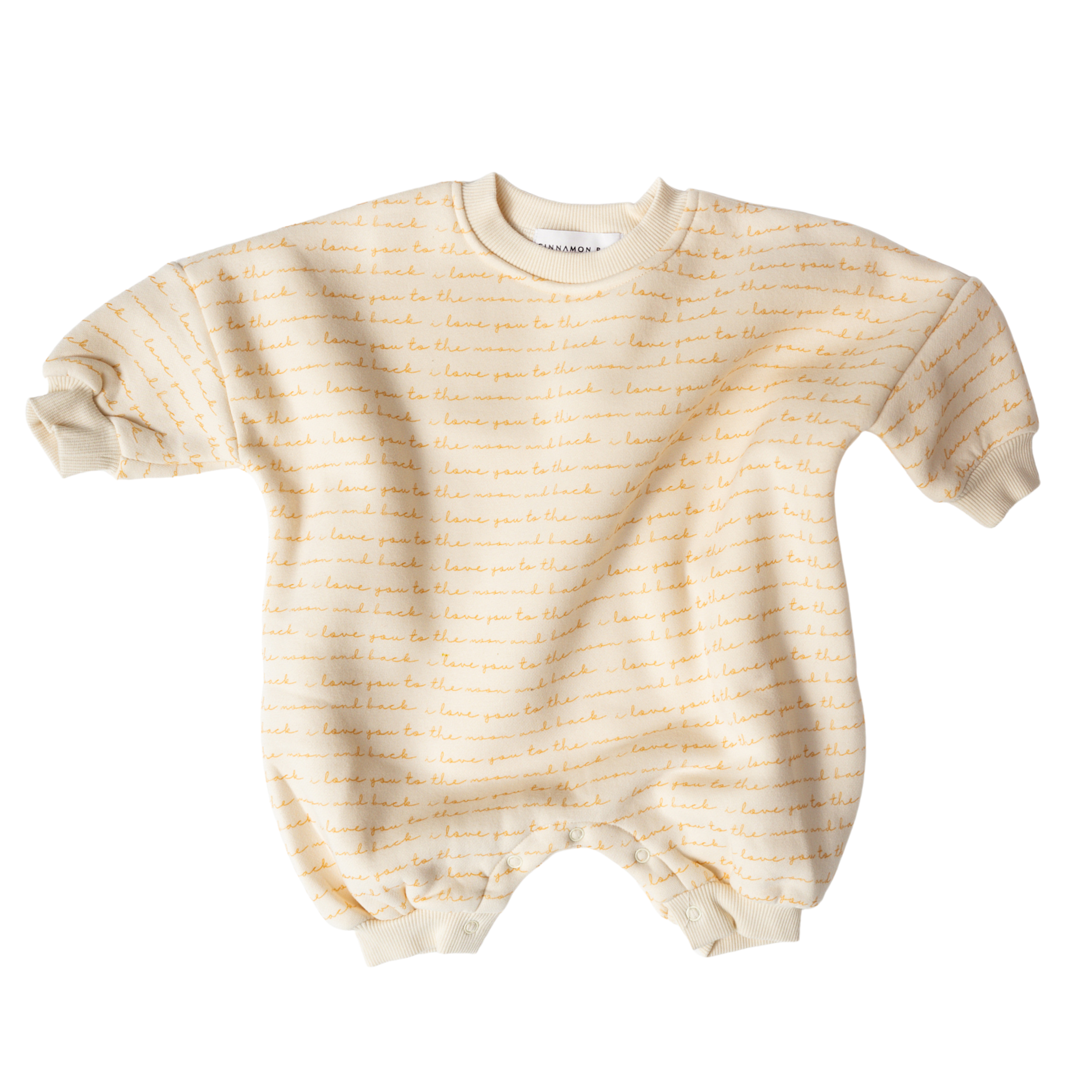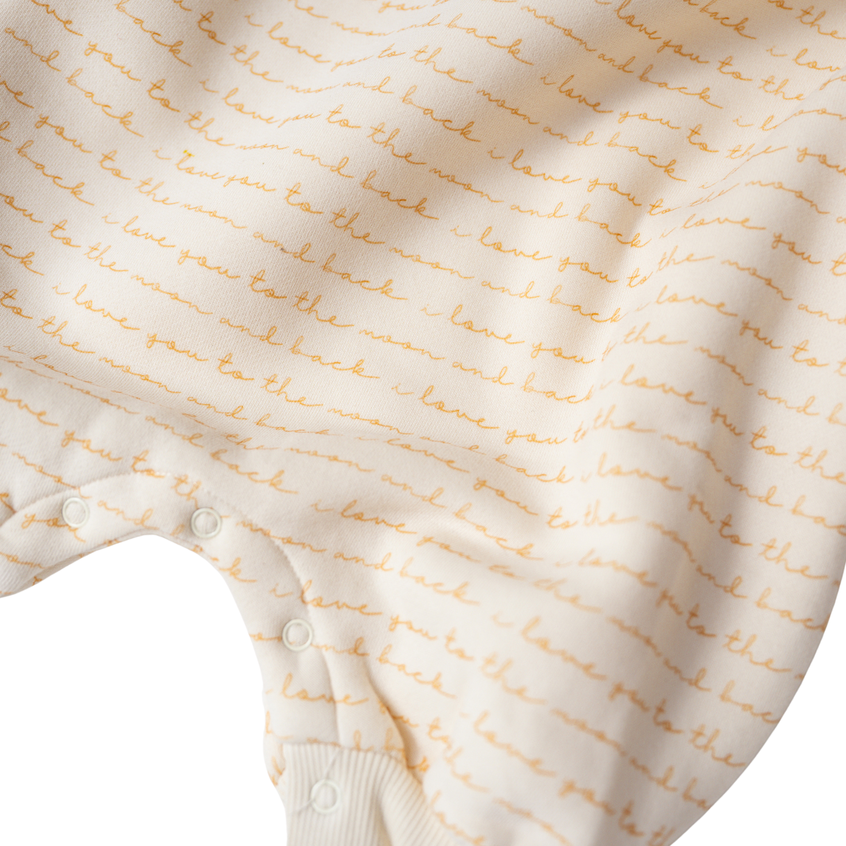 Soft, simple, and made with love. This cozy lounge suit features the sweet words “I love you to the moon and back” printed in gentle lines across the fabric in a soft tone.